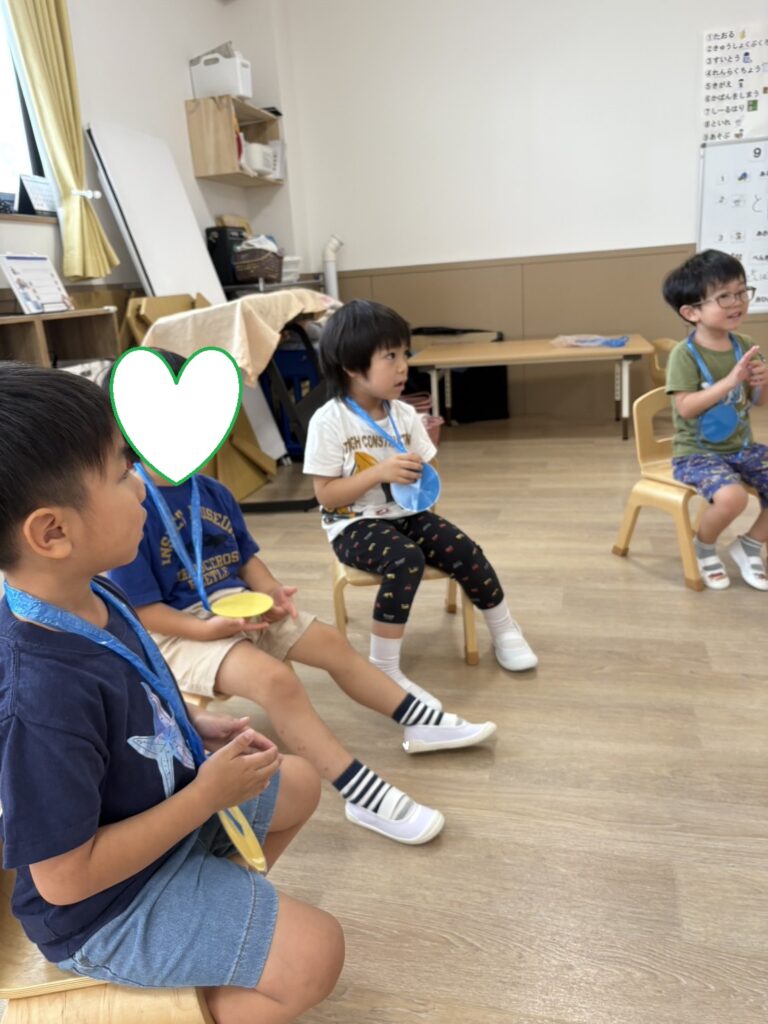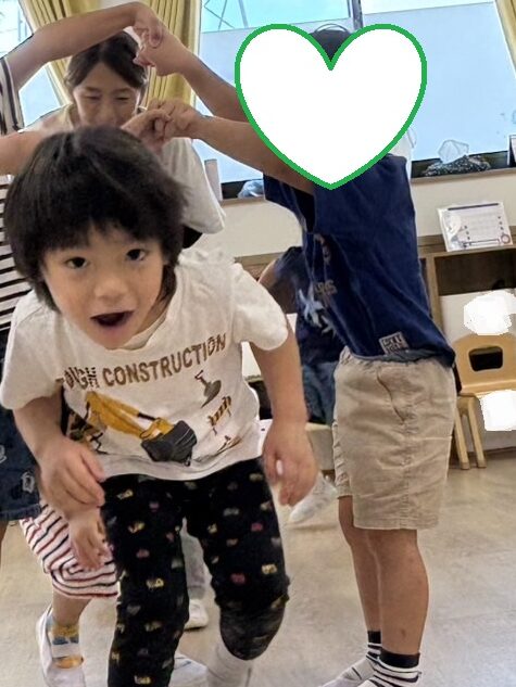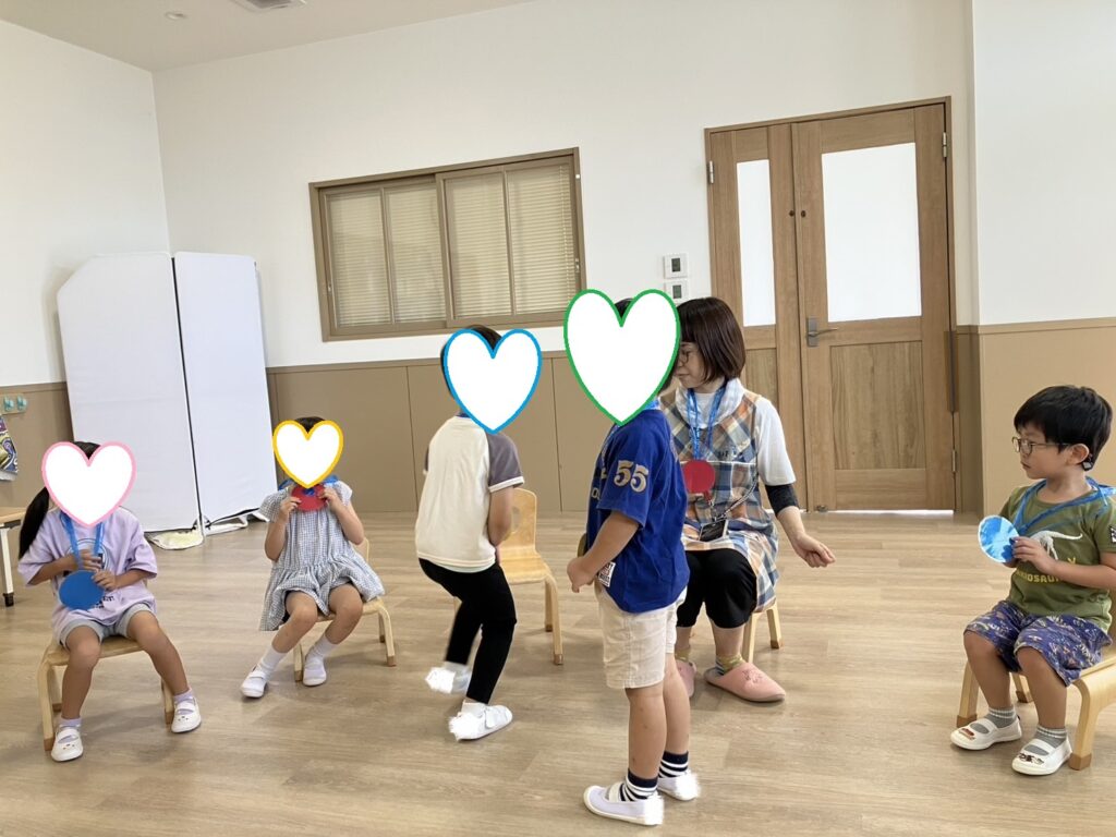 真ん中に立った子は何色を言おうか考え🙄・・・「あか!」「あお!」等大きな声で言うことが出来ましたよ👍