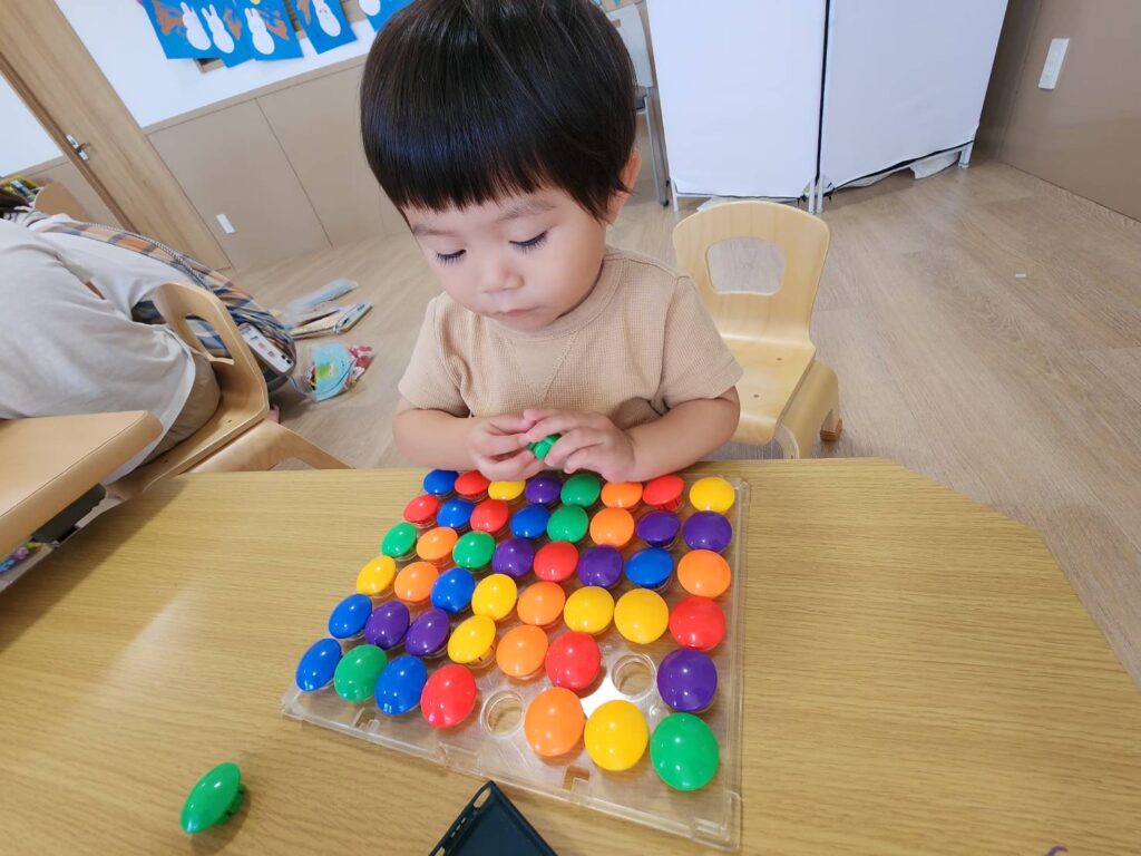 それから利用児さんの意見を取り入れ、赤は『りんご🍎』、黄色は『パイナップル🍍』、青は『海🌊』に名称を変えてのチャレンジ!