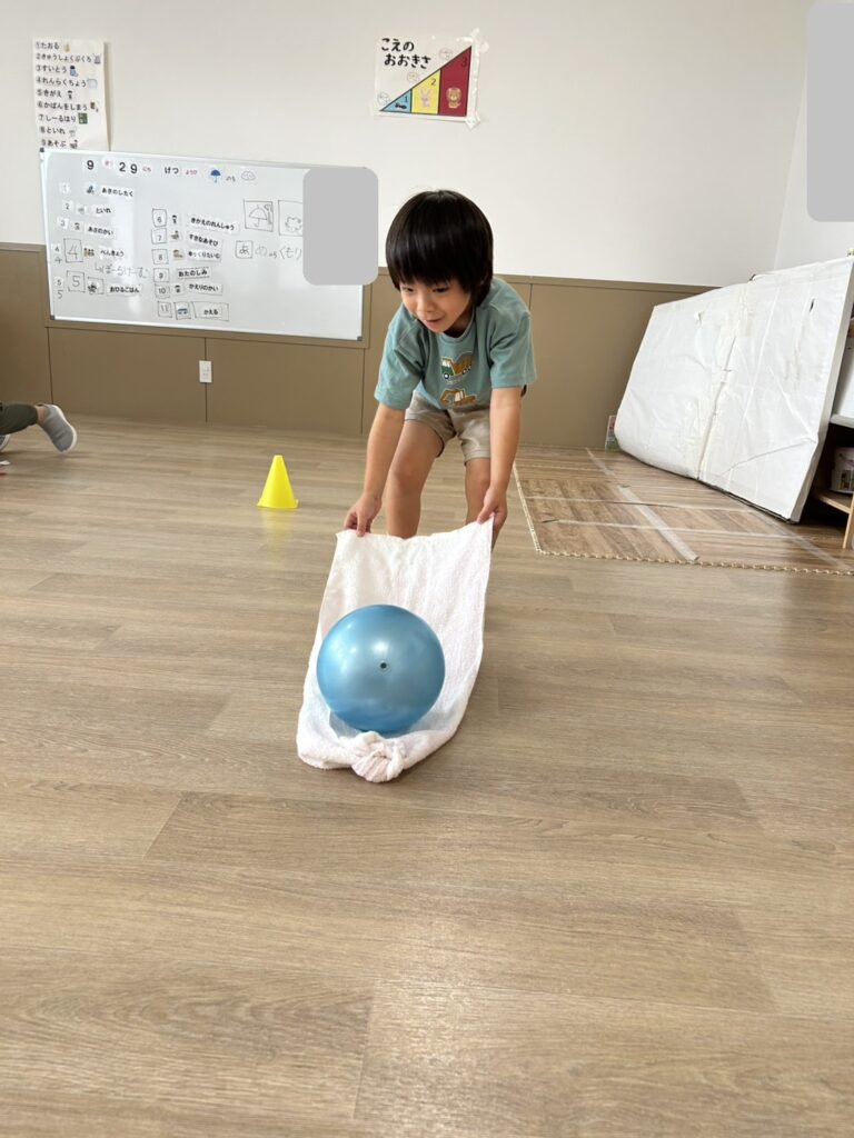 タオルに乗せたボールを落とさないように・・・慎重に運んでいたみんな😲