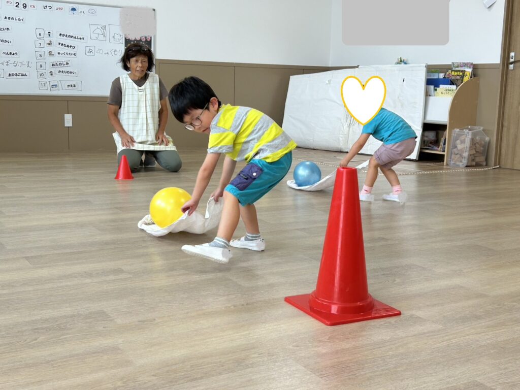 腰をおとしてゆっくり進む子や、ボールに意識を集中してじっと見つめながら進む姿が見られました👀