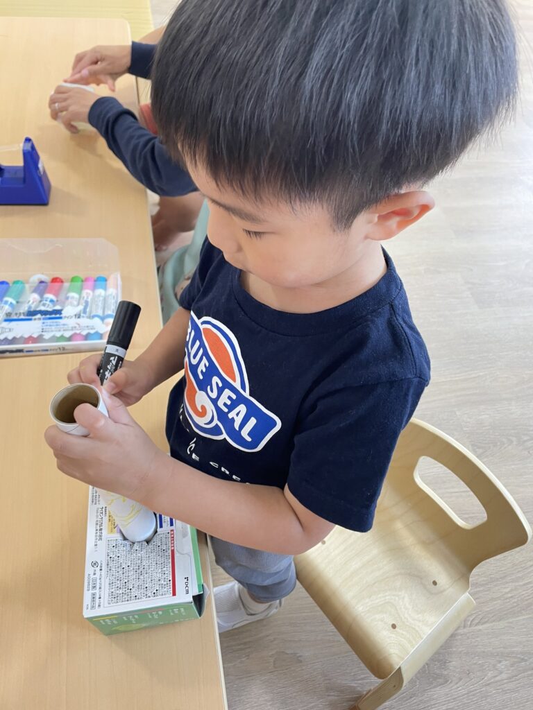 ロール芯を使ってお掃除クリーナーを作っていた子がいましたよ☺
