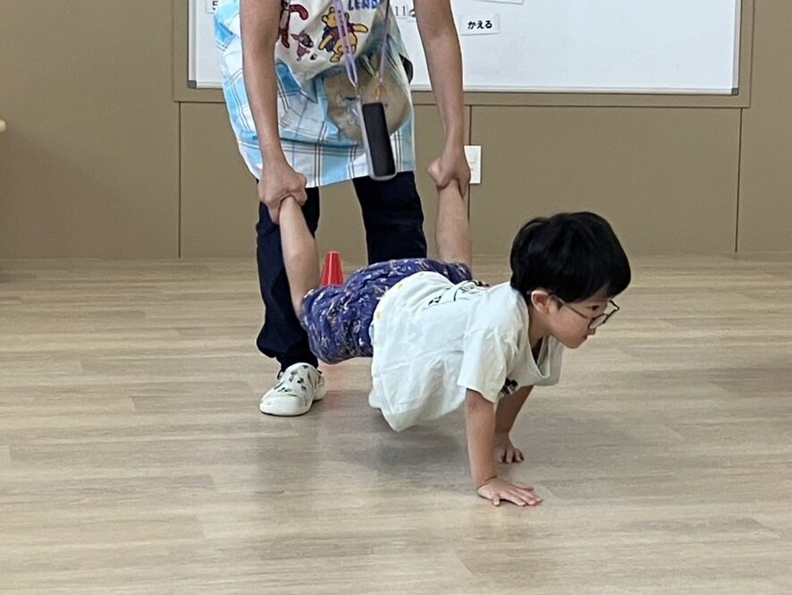 お友達が待っているところまで両手を使って転がし「はいどうぞ」と言っていた利用児さんもいましたよ😆