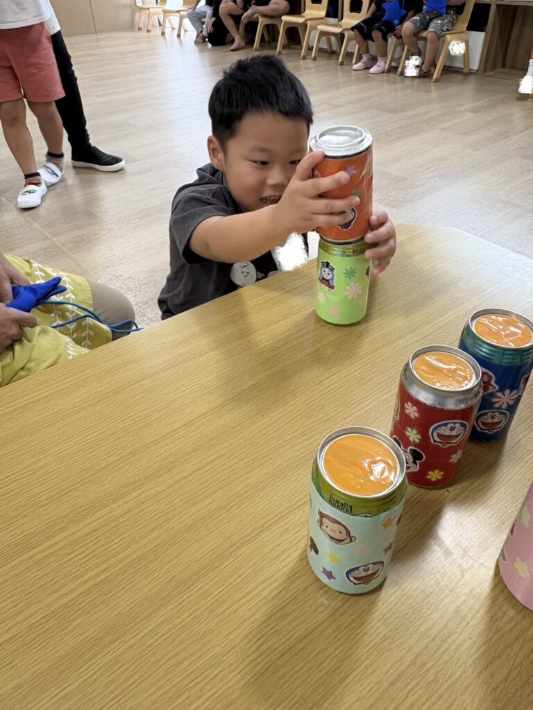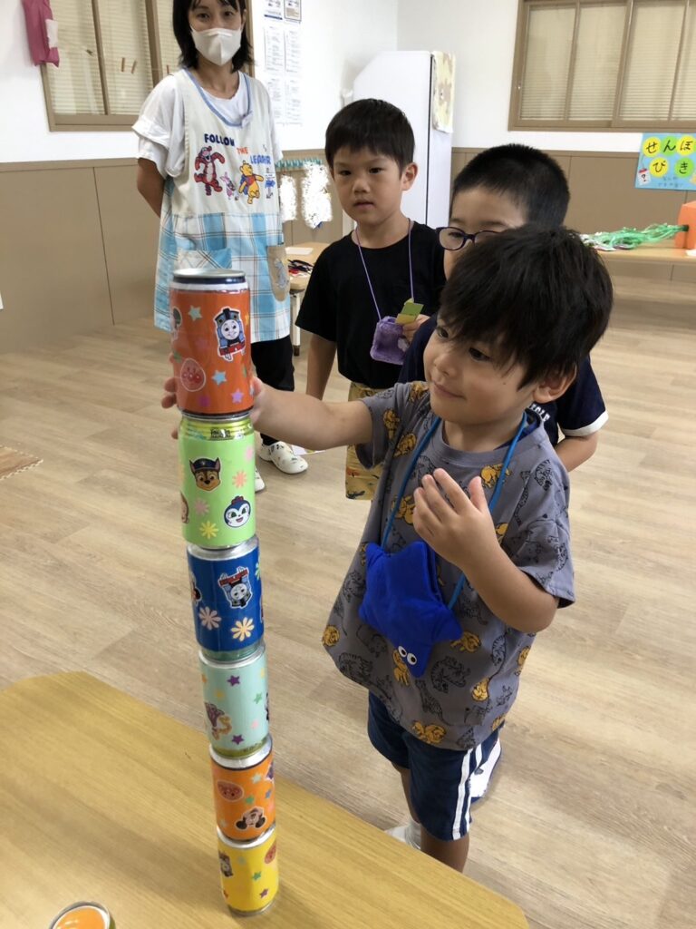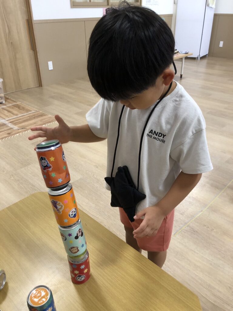 いざ缶つみが始まると、お友達に負けてしまい悔しくて目に涙を浮かべていた利用児さん😭😳