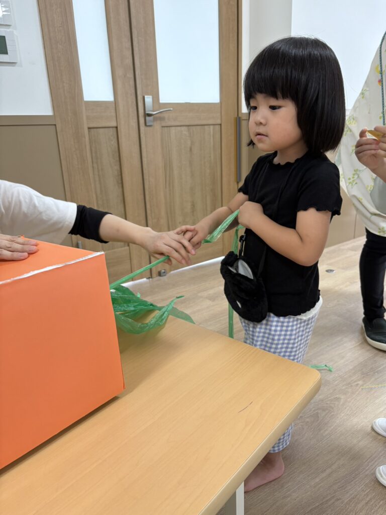 どの紐を引っ張るか決められない子にはヒモを2本だして「どっちにする?」と提示✨