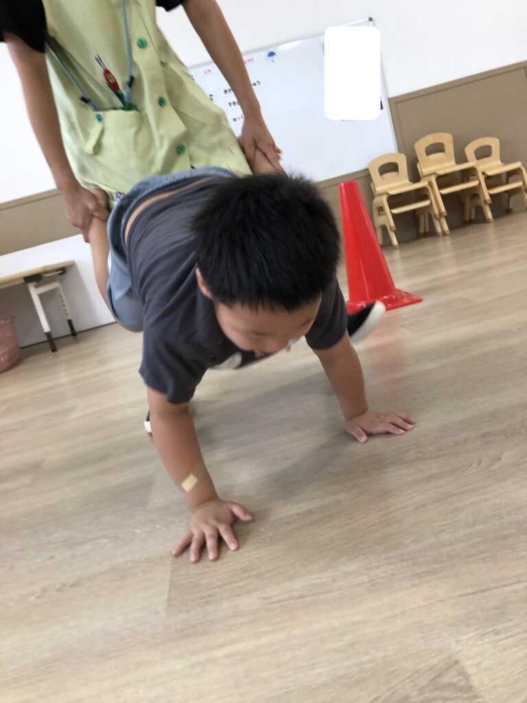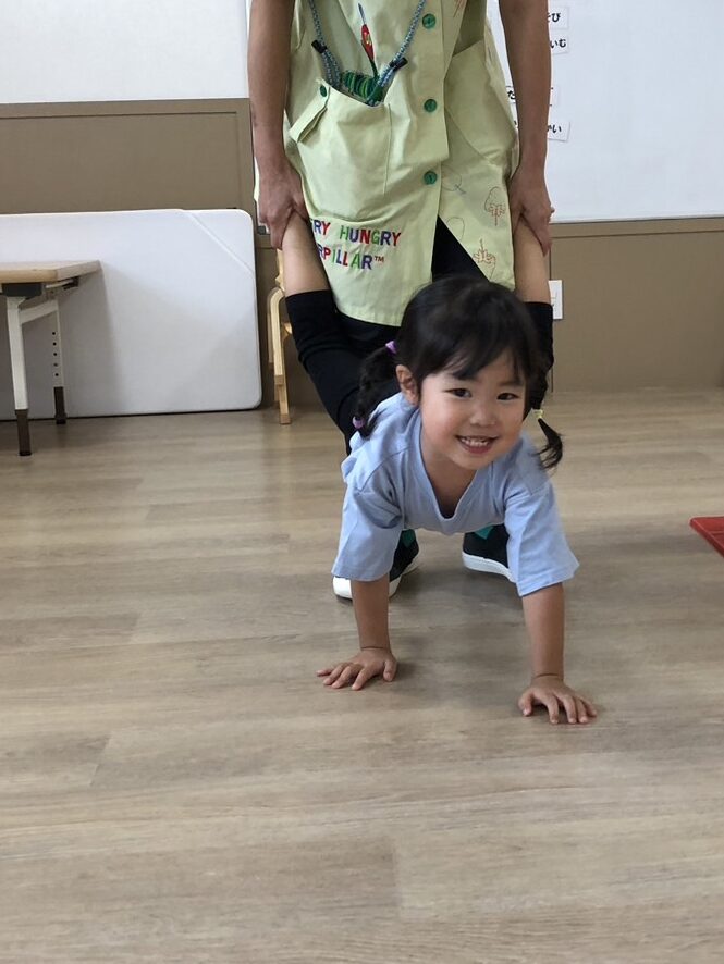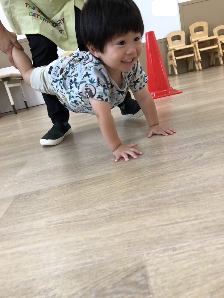 手押し車では初めて経験する利用児さんもいましたが、一歩一歩前へ手を出して進む姿が見られました👀