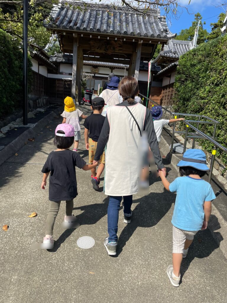 お寺の本堂まで手をつないで歩いて行き、お参りをしました。