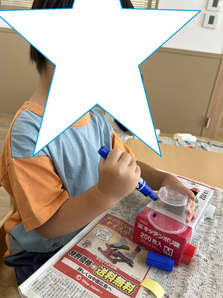 「ガチャガチャを作る!!」とイメージを持って作り始めた利用児さん🙌