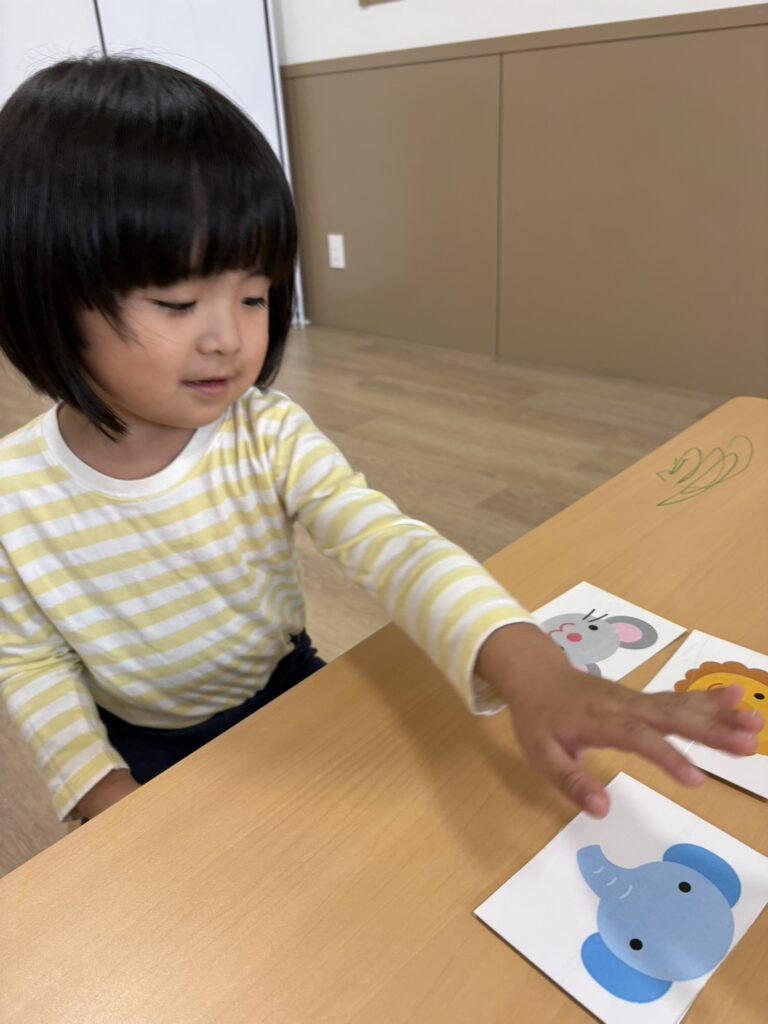 ワーク、絵合わせ、ペグ、動物カード (これ何?)等それぞれに合った課題を行いました📖