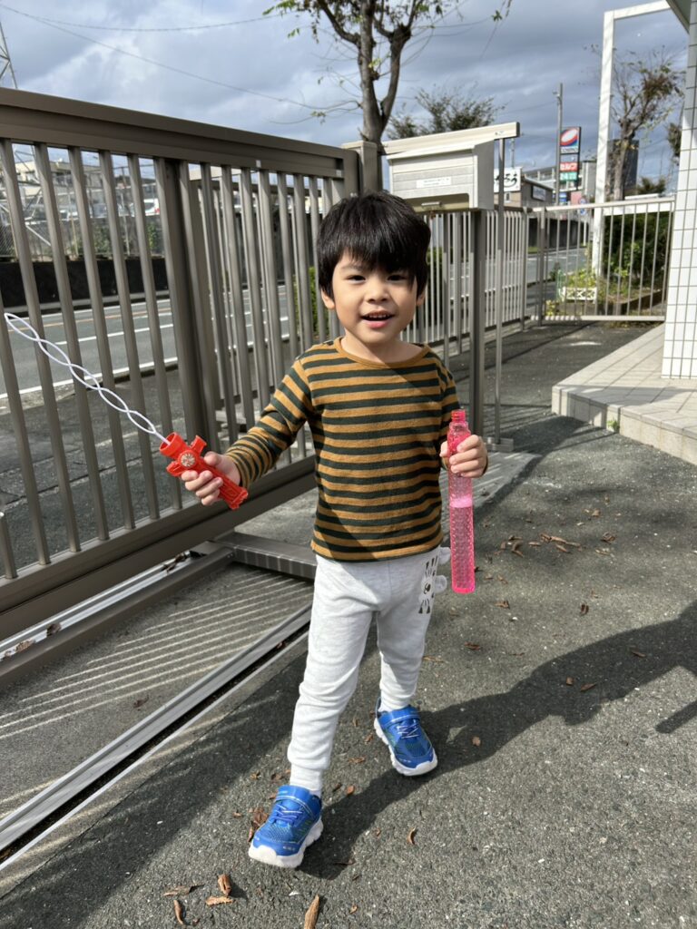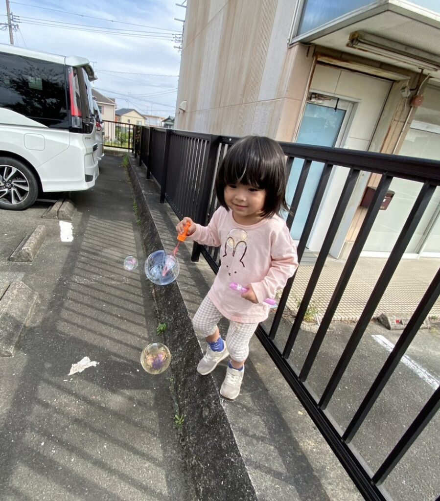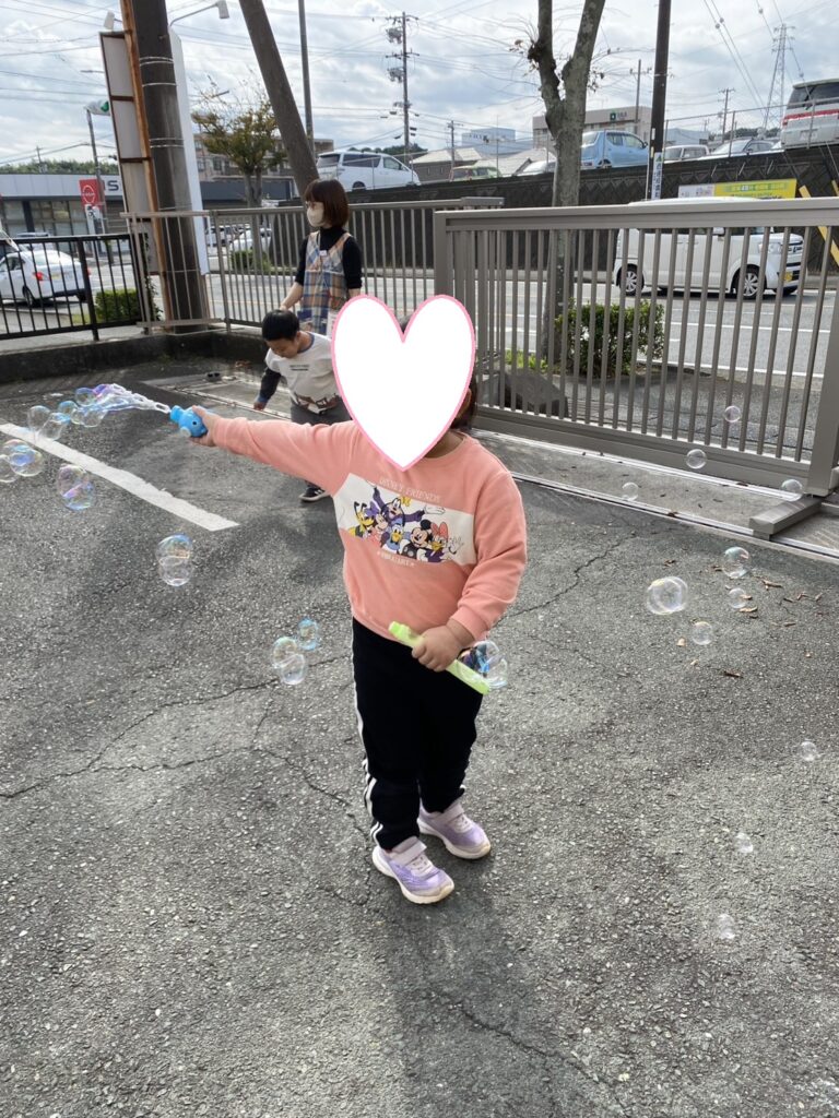 飛んでいるシャボン玉を見つけた利用児さん😍キラキラした顔で追いかけていましたよ✌