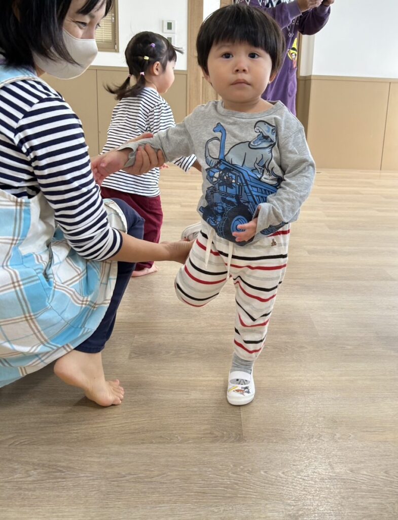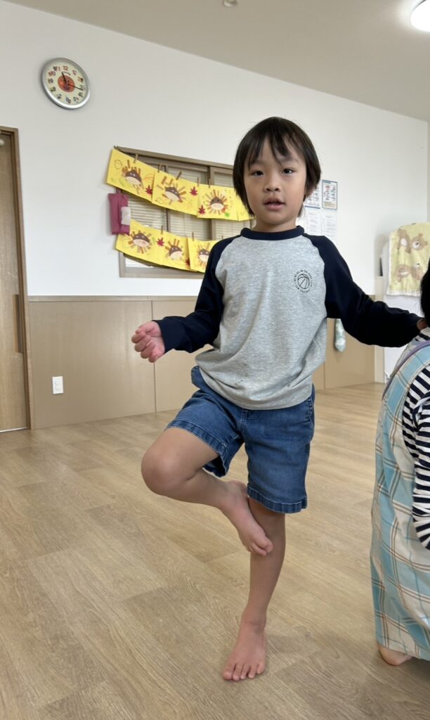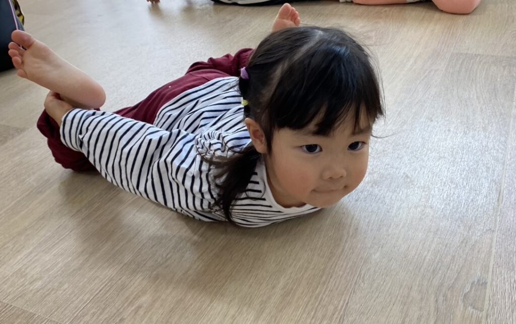 亀さんのポーズでは今まで顔を上げることが出来なかった利用児さんも自分の力で頭を持ち上げて前を見ることが出来ました👏繰り返しの経験が『できた✨』に繋がっていますね☺