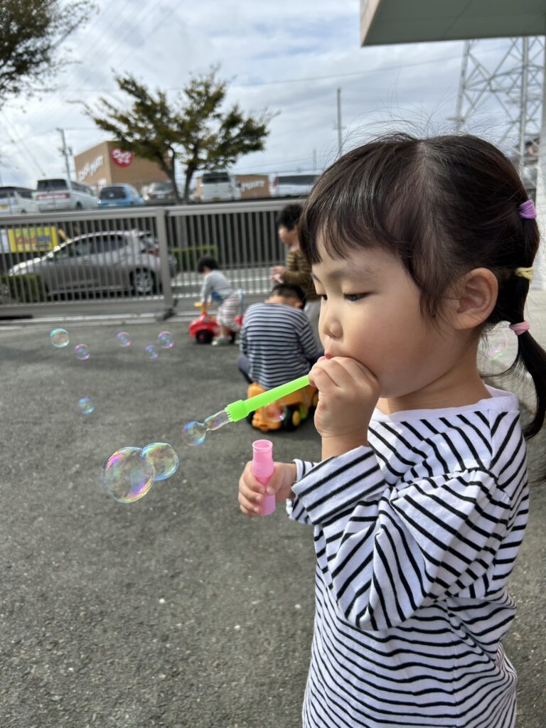 過ごしやすい時期になったので三輪車、コンビカー、シャボン玉などを楽しみました😁