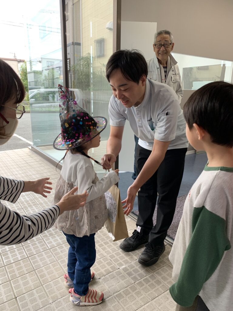 本社に着き、元気よく「こんにちは」のご挨拶をしてから一人ずつお菓子を頂きました😃👐