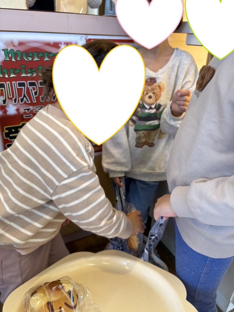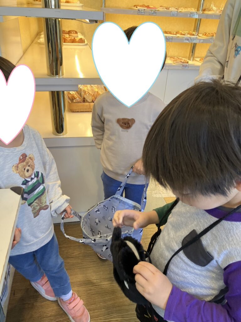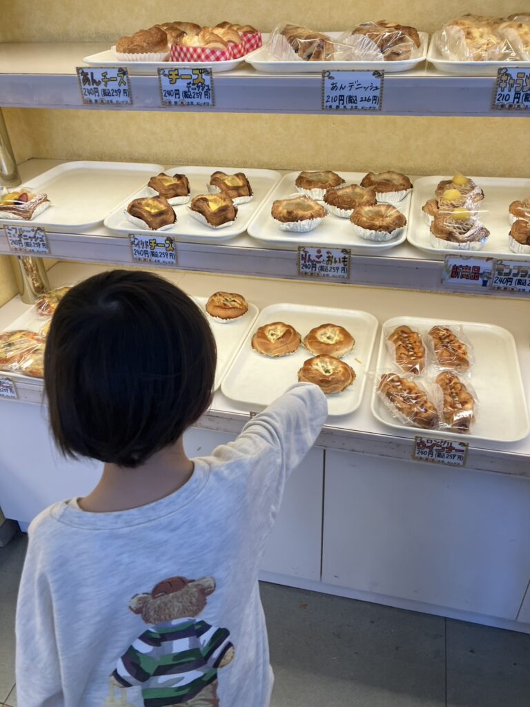 パン屋さんでは食べたいパンを指差し👆で選んでもらいました☺