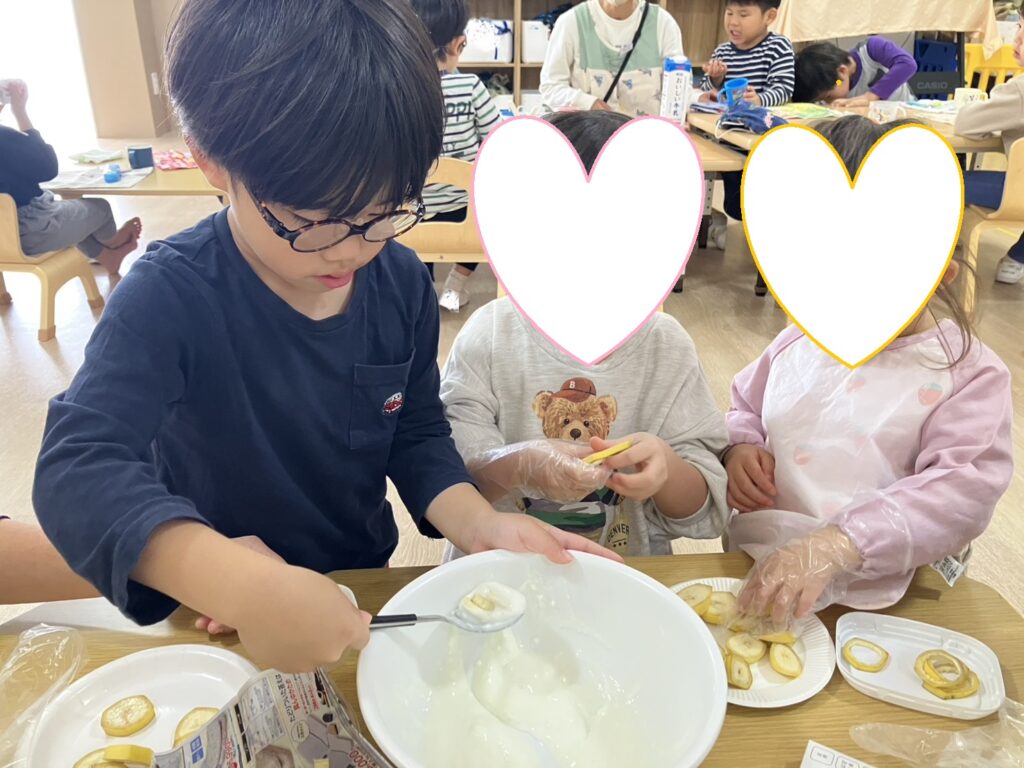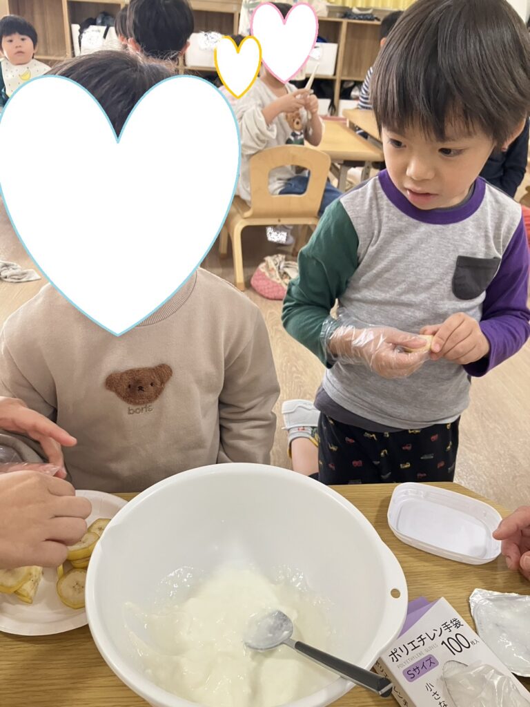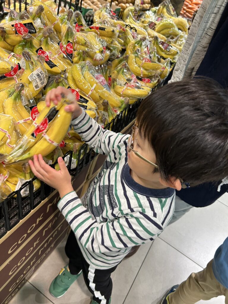 朝の会にて「クックマートではバナナ🍌、ヨーグルト、唐揚げを買ってきてね」と伝えました。