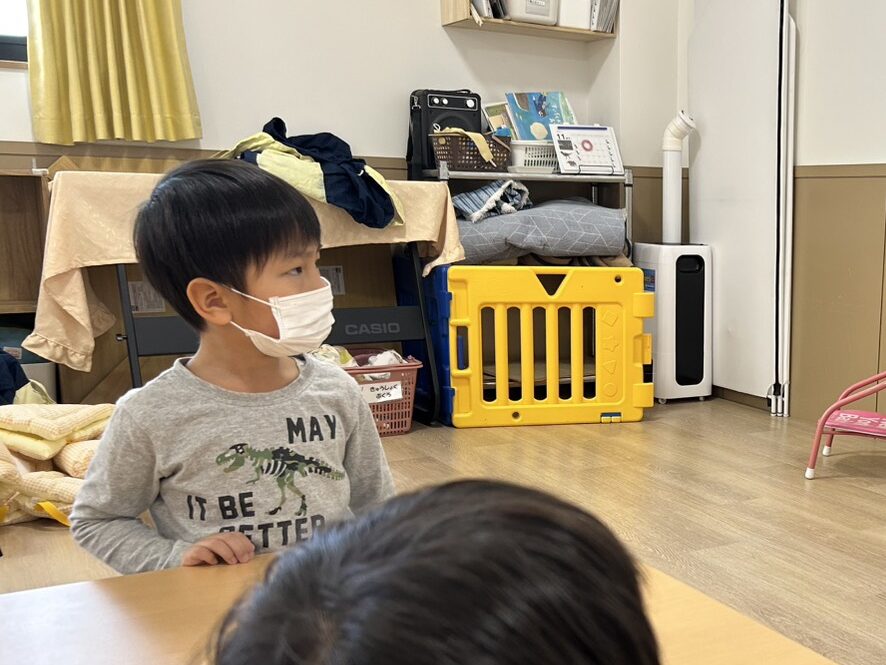 部屋のイラストが出てきた際「どこが危ないかな?」と職員がみんなに質問すると、すぐに「本のところ!(本棚)」との答えが聞こえてきました😊