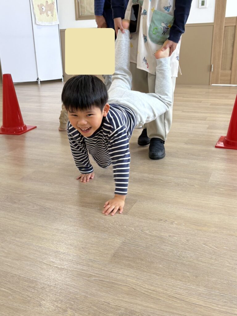 手押し車では前回、片道だけしか進めなかった利用児さんが今回は途中休憩を入れながらも最後までゴールすることが出来ました🤩経験の中から身体の使い方が上手になってきていますね👏