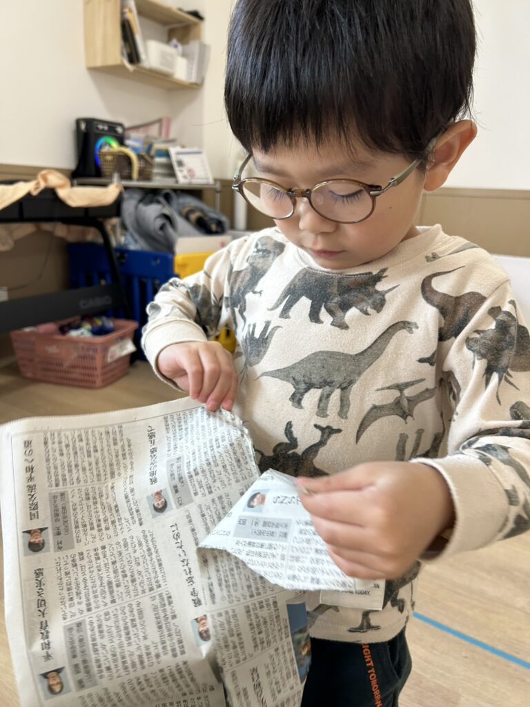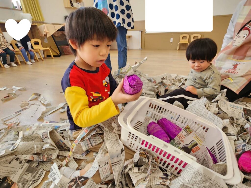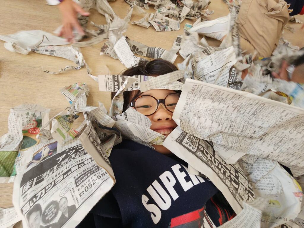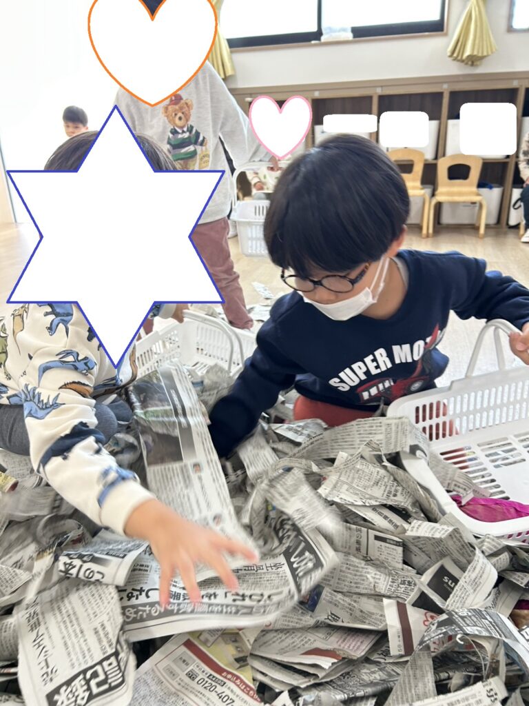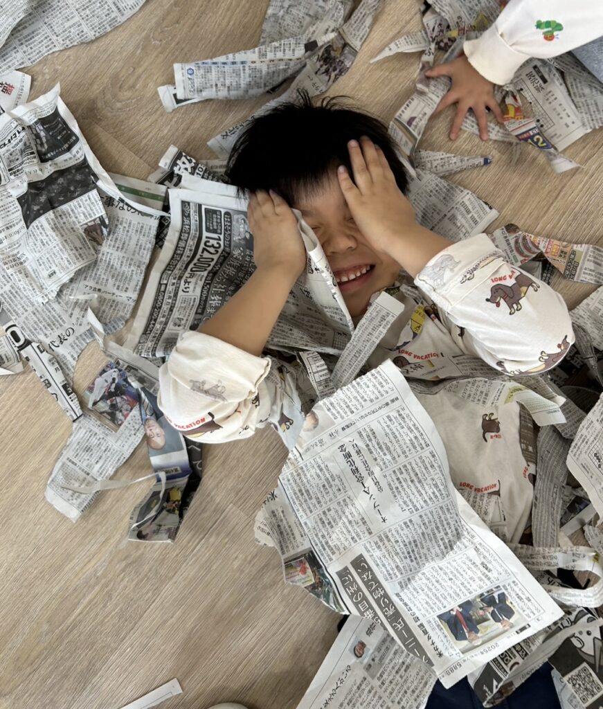 その後は自由時間😆新聞を集めて上に撒いたり、「隠してーーー!」と新聞をお互いに掛け合う様子も見られました👀