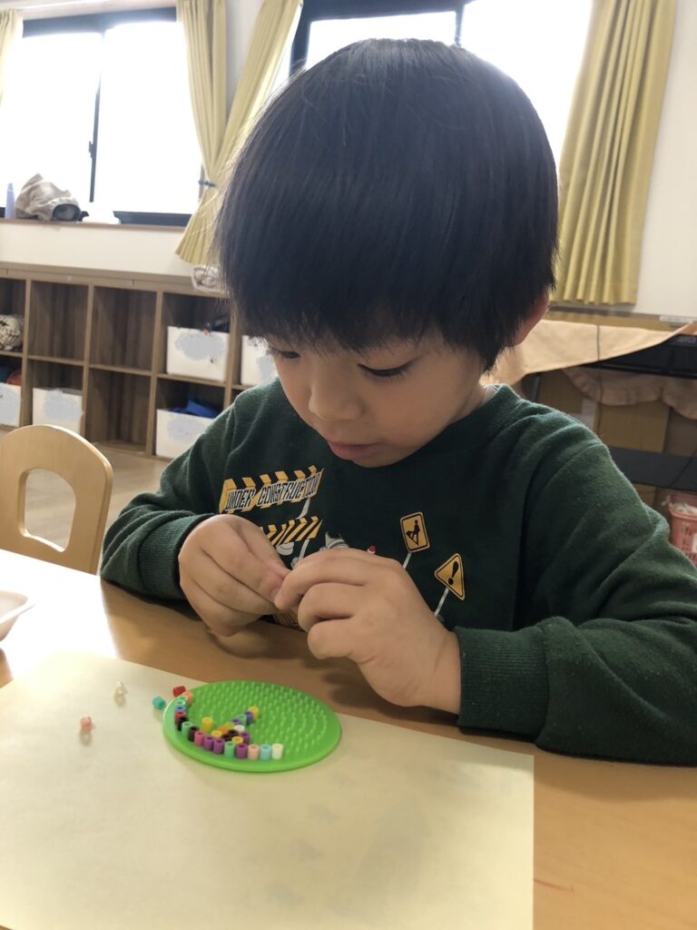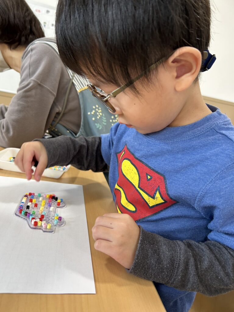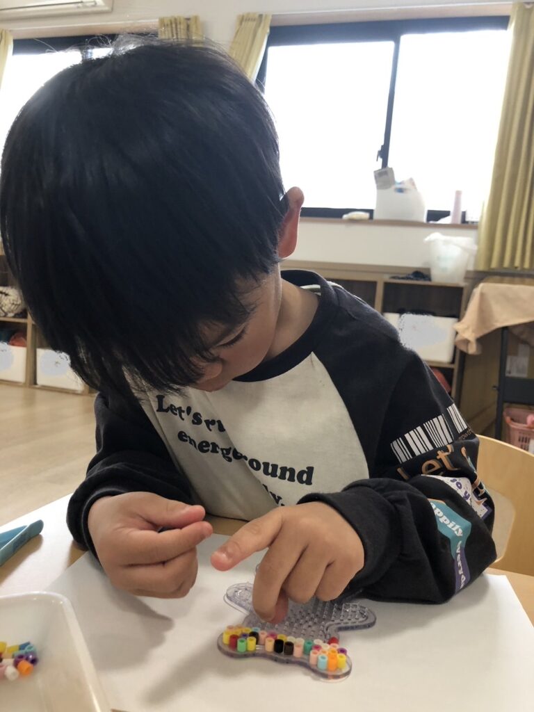 アイロンビーズでは指先を使って一つずつはめていき・・・集中して取り組んでいた利用児さん達です👀