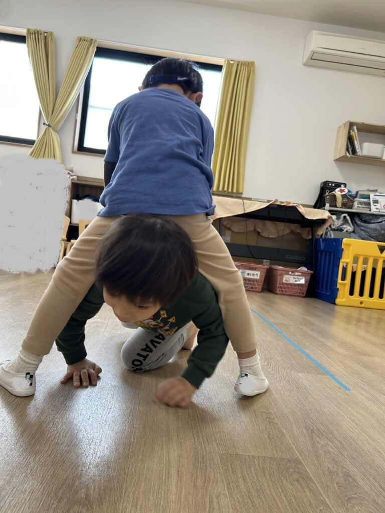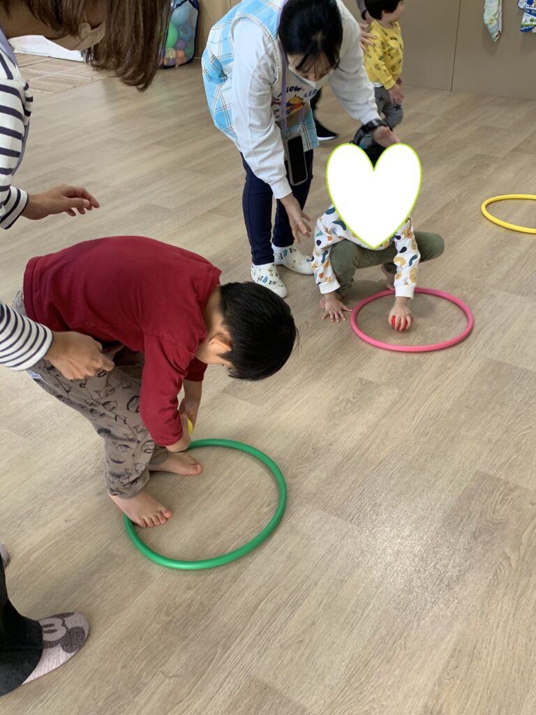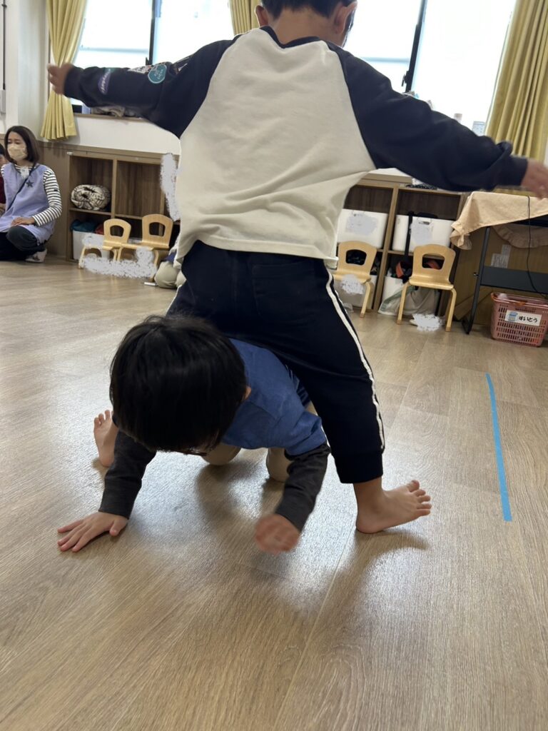 股(トンネル)くぐりは初めての課題でしたが、お友達同士でトンネルをしたりくぐったり・・・
