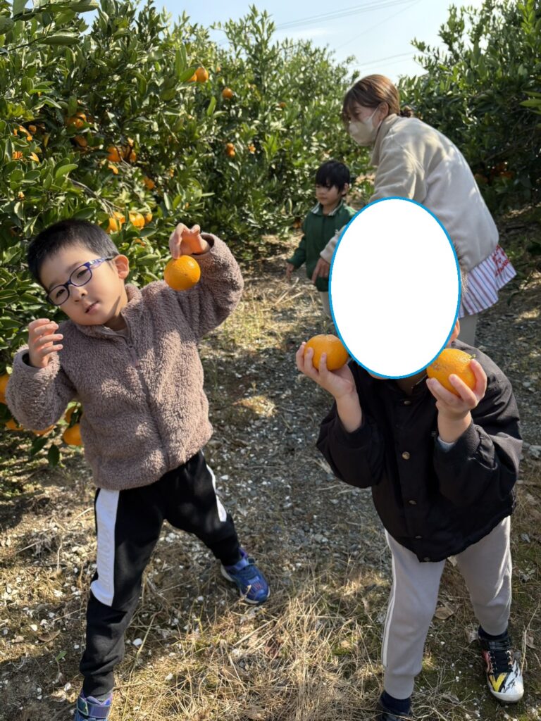今日はみんなが楽しみにしていた「みかん狩り」へ行きました🍊