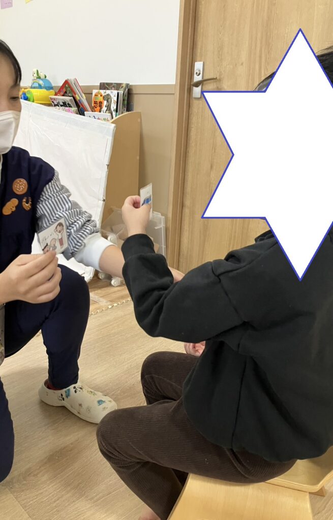 朝の会では今日行うことを絵カードを使用しながら確認しています💳