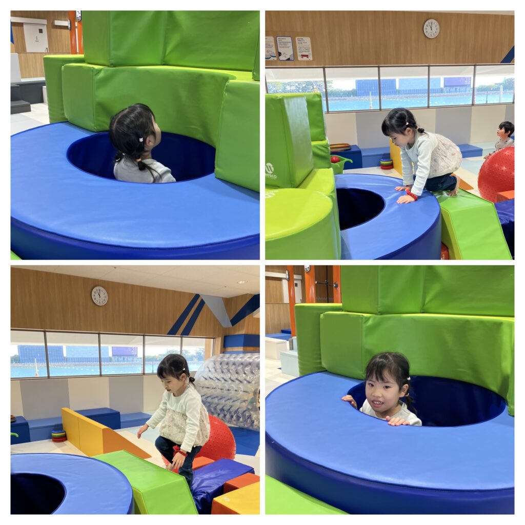 ボールプールではお風呂のように気持ちよさそうに入ったり、イルカになって泳いでみる姿も🐬