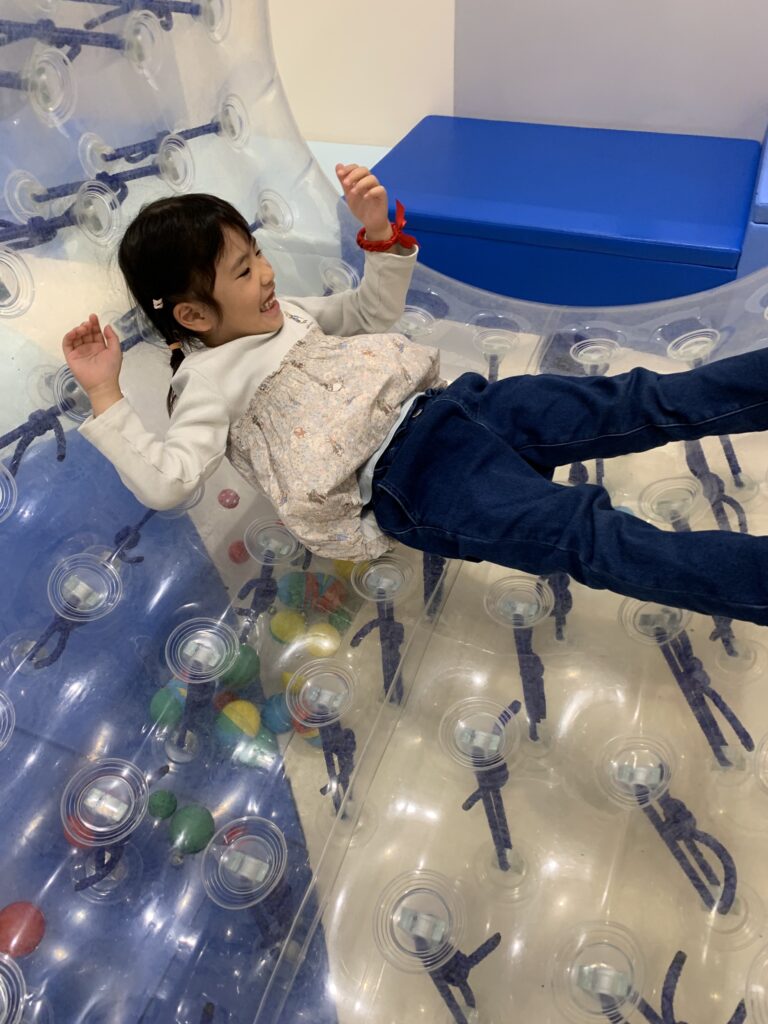 エアー遊具に乗って揺れを楽しんでいた子はとびきりの笑顔を見せてくれました(^^♪