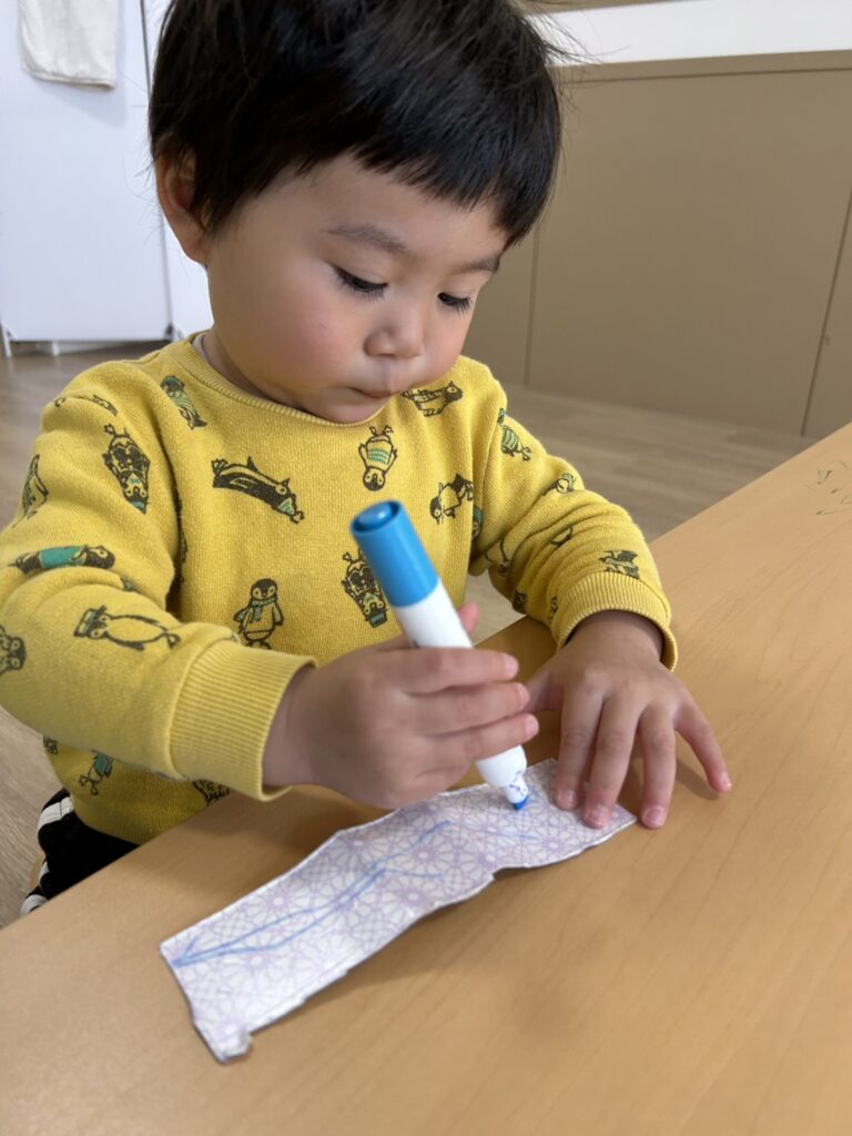 慣れてきた子には2色を同時に指定し、2個のフープに移動することも挑戦しましたよ🎨