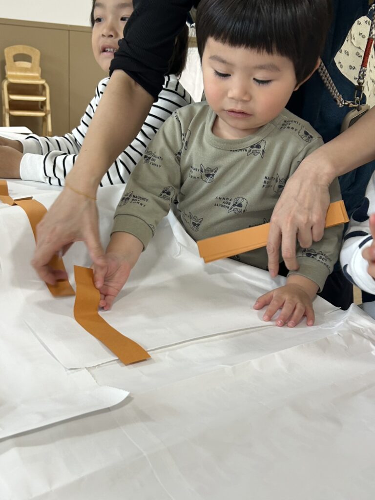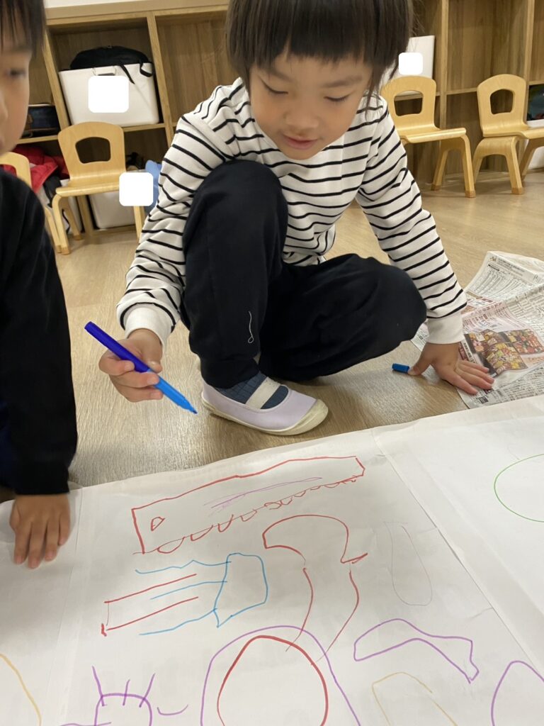 それから大きな紙に線路を貼ったり、書いたり・・・