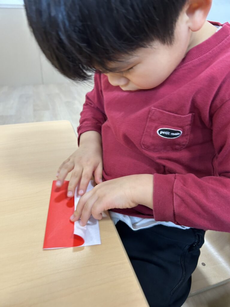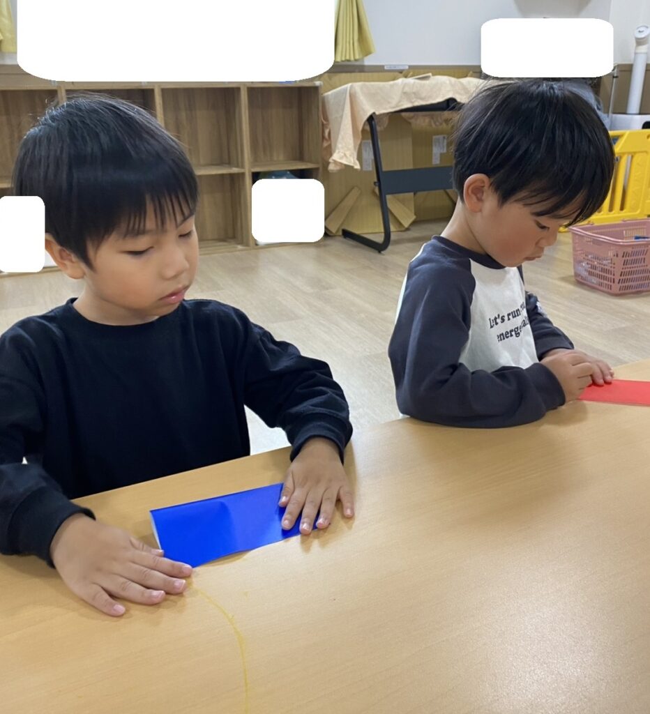 半分に折ってアイロンをして…好きな色の新幹線が出来上がりましたよ🚅