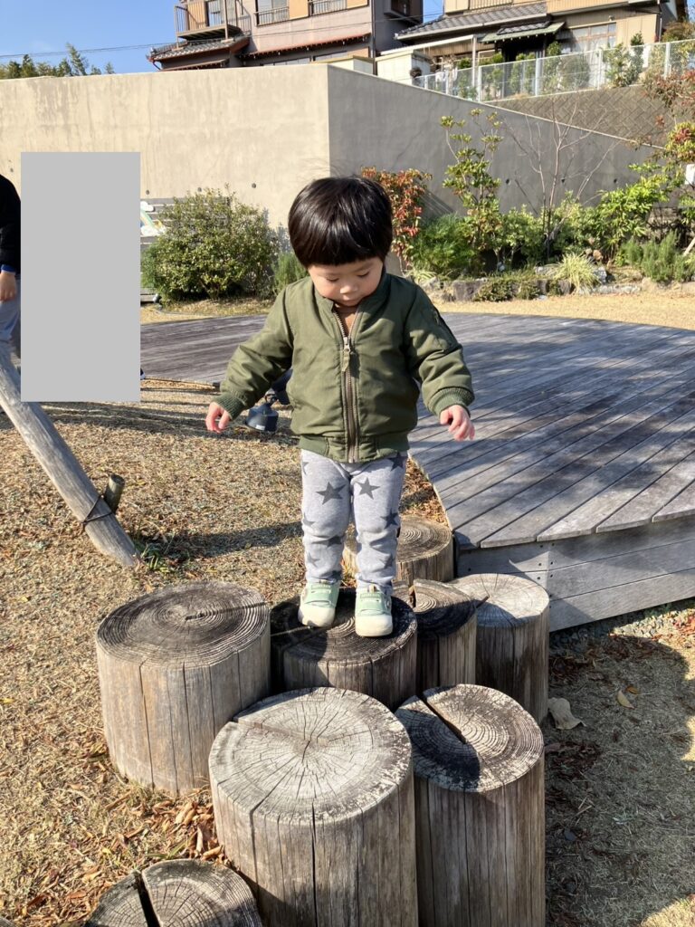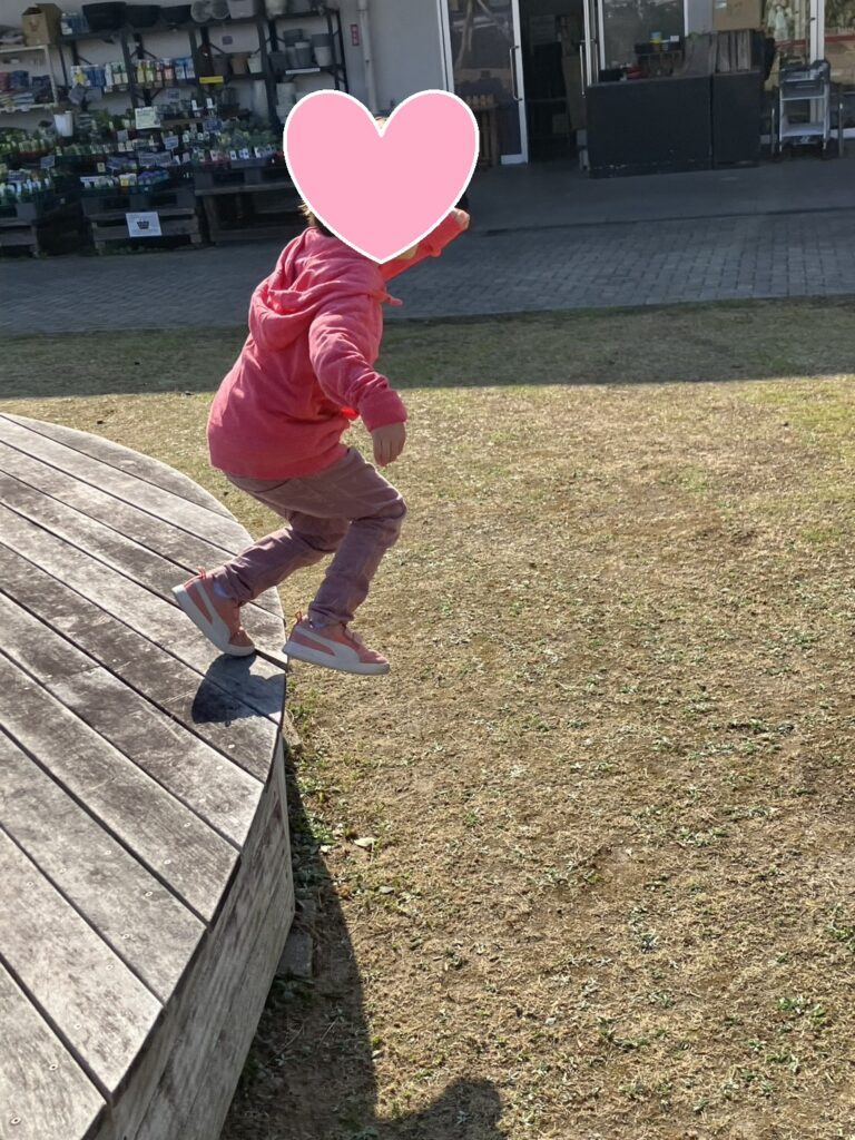凸凹の丸太を歩いたり、ウッドデッキからジャンプしたり・・・