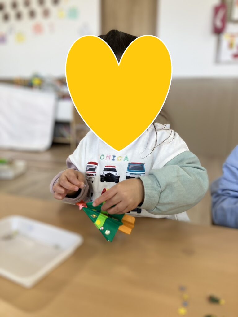 集中して黙々と貼っている子や自分で貼ろうと頑張っている子、お友達とおしゃべりしながら貼っている子・・・様々な姿が見られました👀