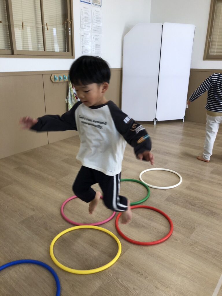 フープジャンプでは片足でケン・ケン・パ👣に挑戦する利用児さんも!!