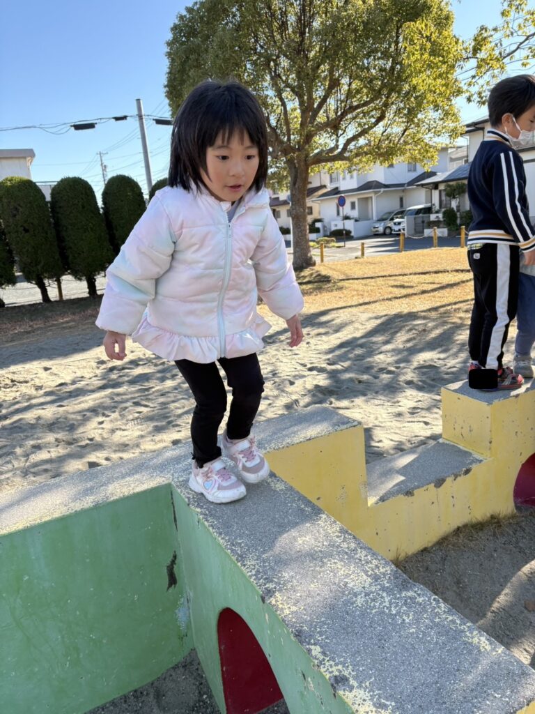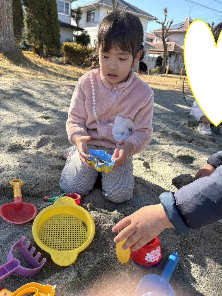 友達を誘って一緒に滑り台を行ったり、お砂場セットのスコップを「貸して」と言い、交代で使うなどお友達を意識している様子も👀