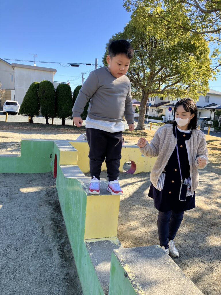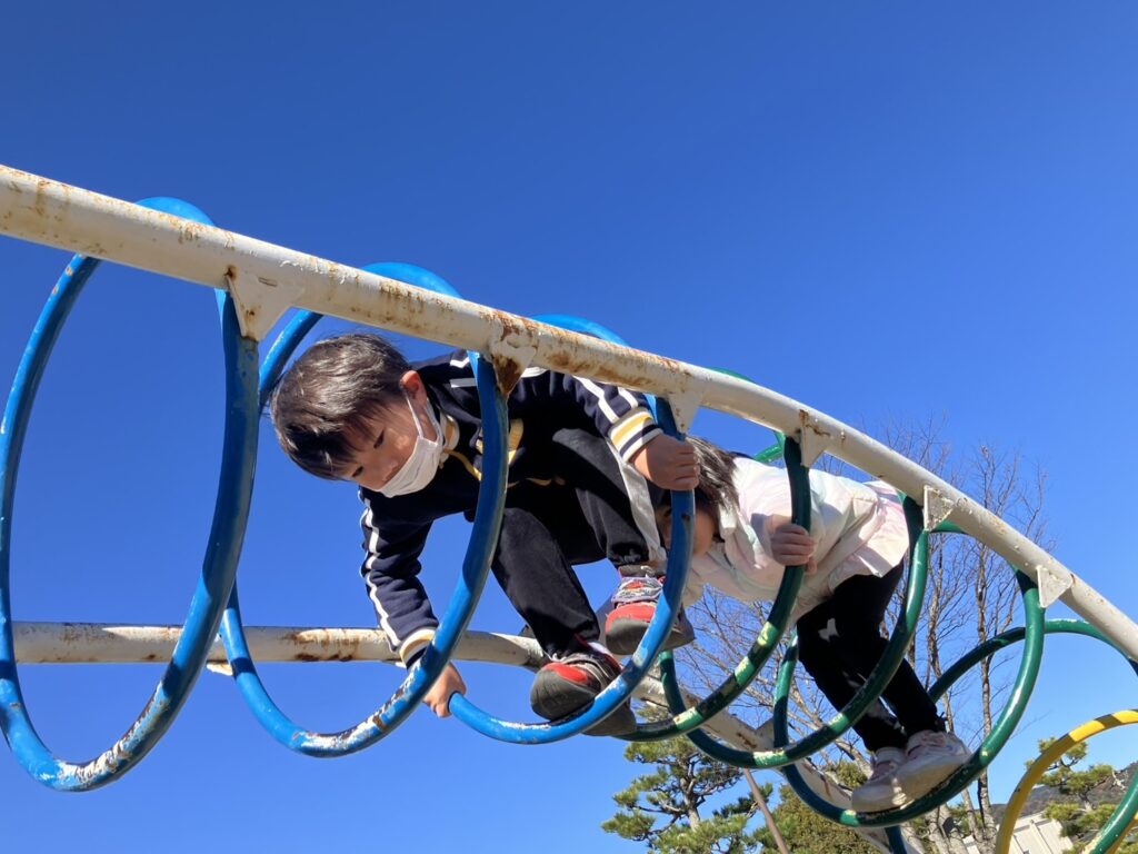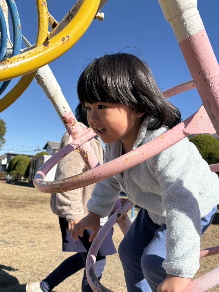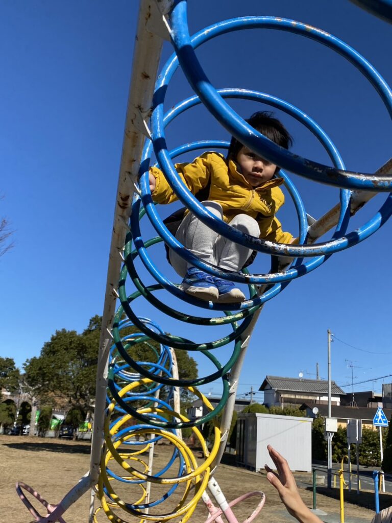 リングトンネル(大型遊具)では上に上がっていくと高さがありましたが、利用児さんは怖がることなく、一歩一歩、慎重に進んでいくことができました👏リングトンネルからの滑り台は楽しく、繰り返しチャレンジしていましたよ👊