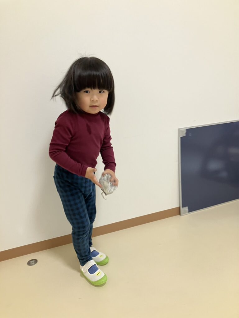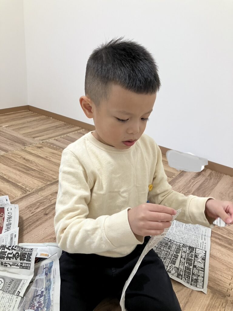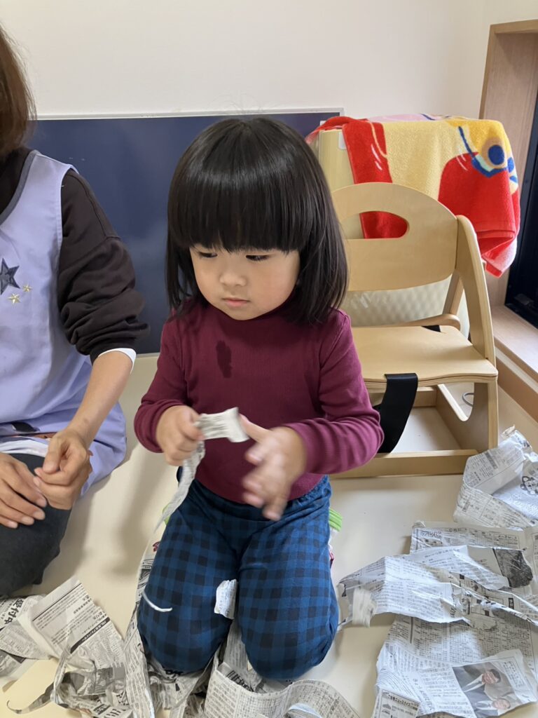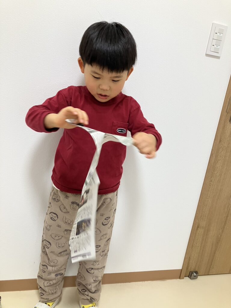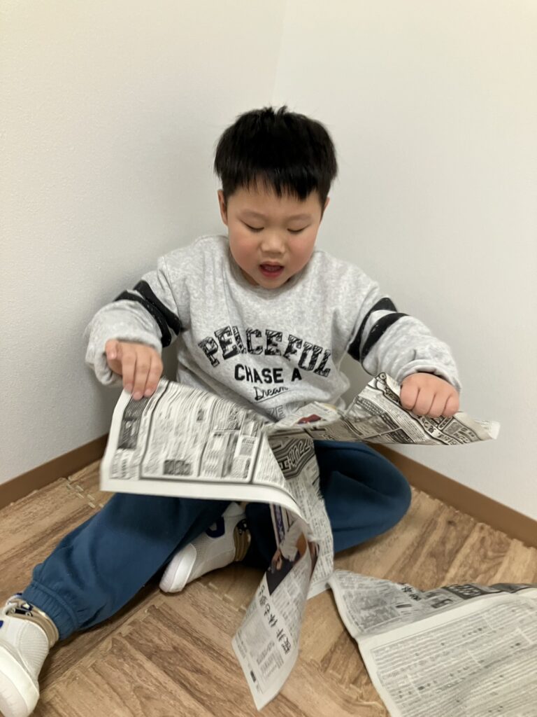 新聞破りでは破った後に丸めてボールにしていた利用児さん🙂