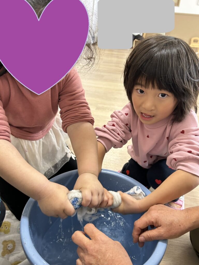 床拭きではまず雑巾絞りに挑戦!!