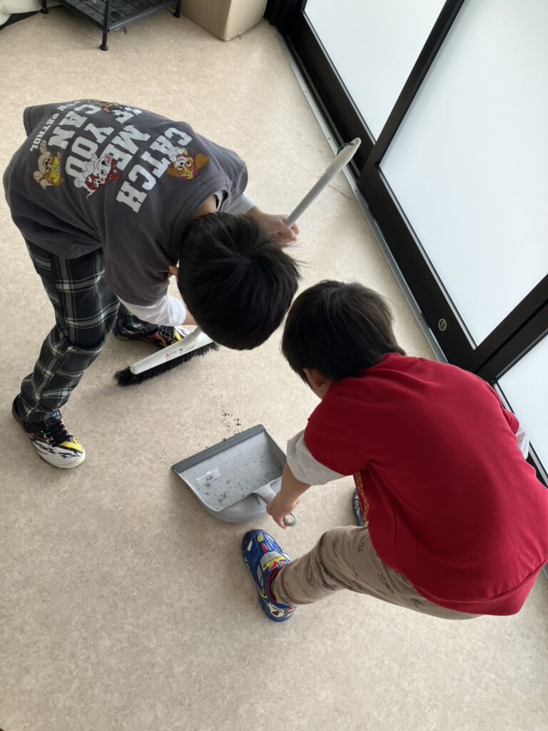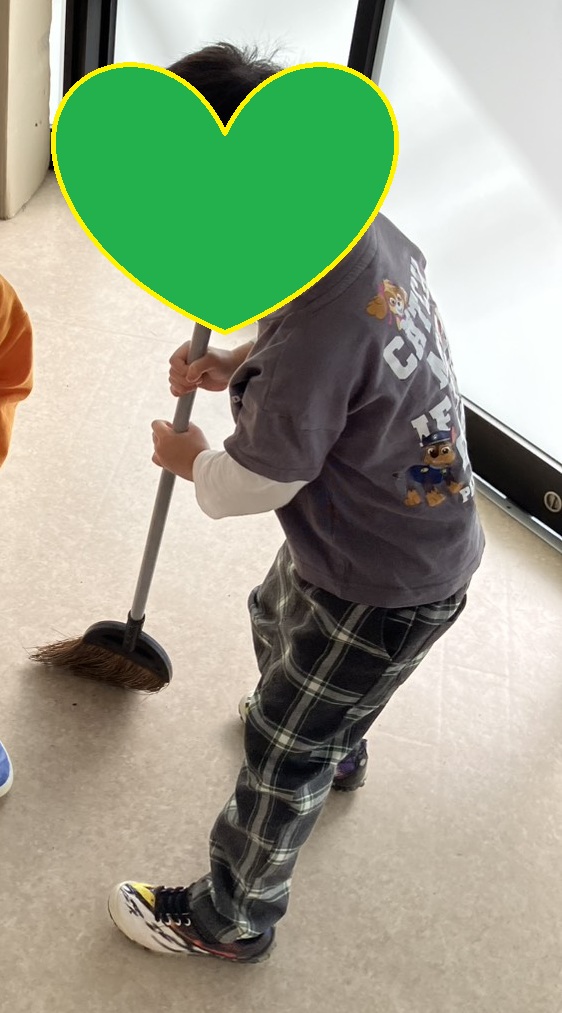 ほうきの持ち方や掃き方を伝えると「わかったよ✌」とのお返事🎵