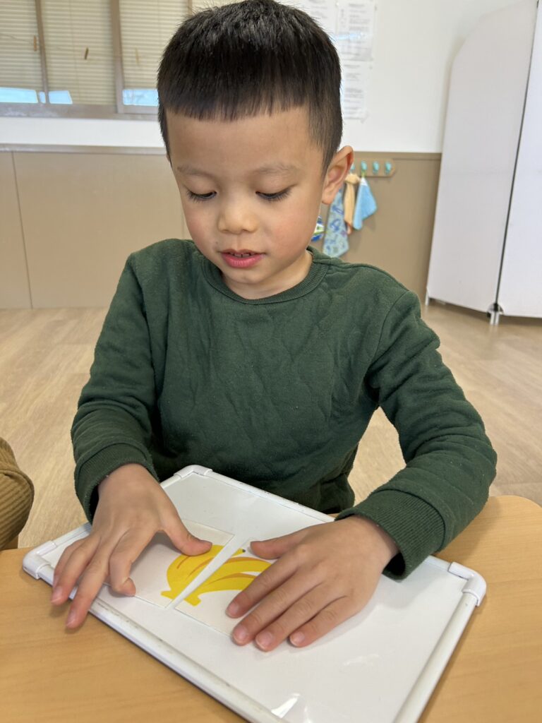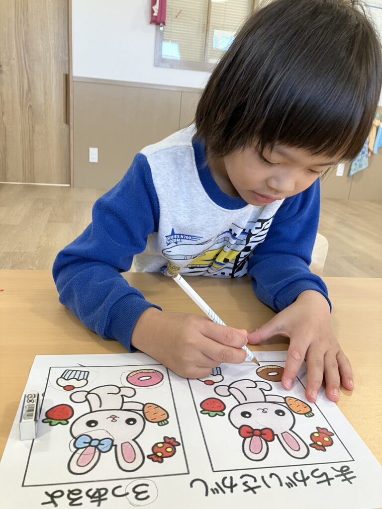 ★個別課題・・・プリント/絵合わせ/マッチング/ペグ差し等それぞれに合った課題を行いました。