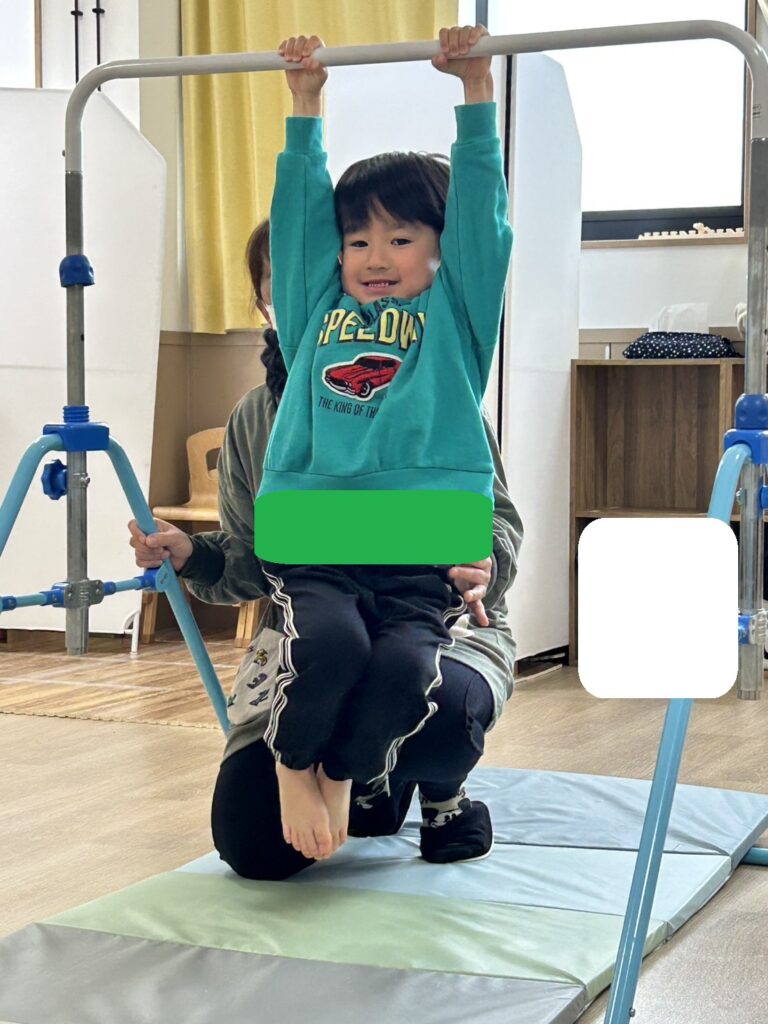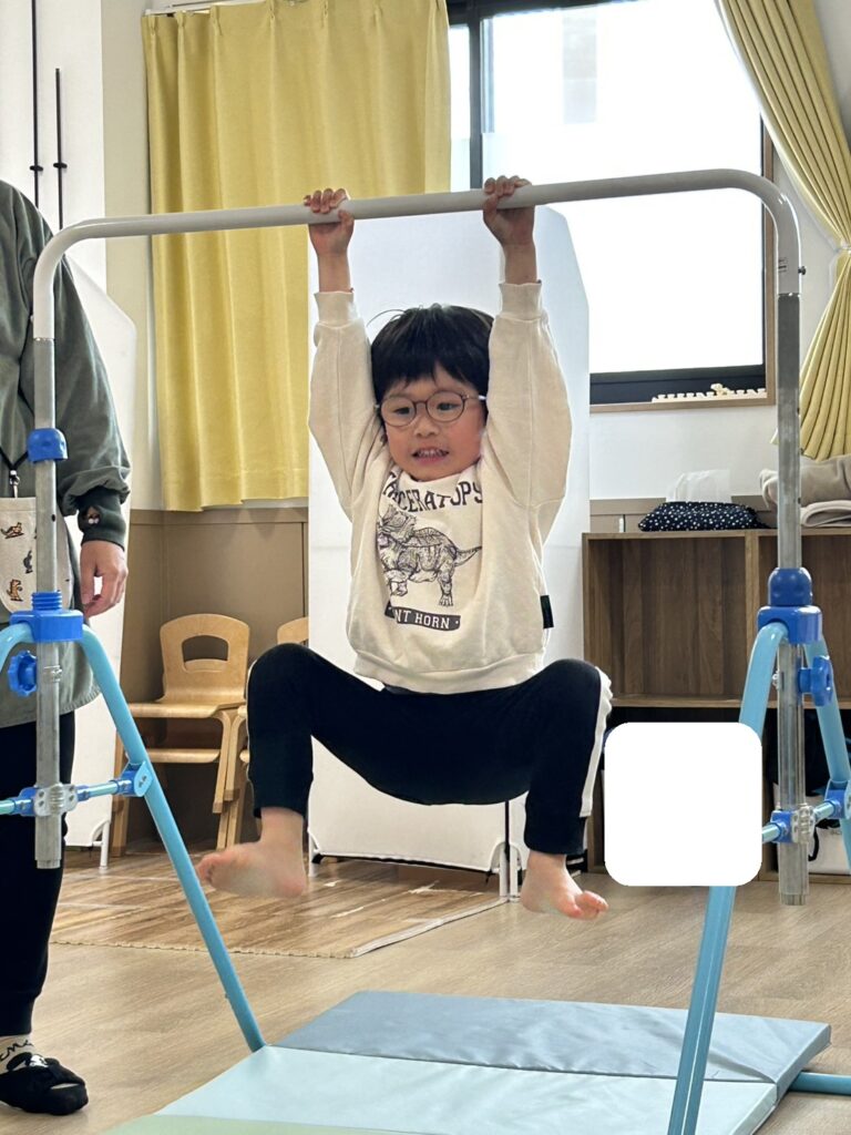 5秒を目標に鉄棒をしっかり握りしめ、足を浮かせることができました💮
