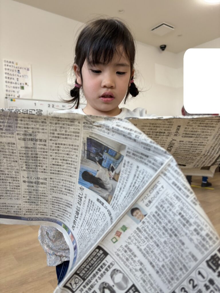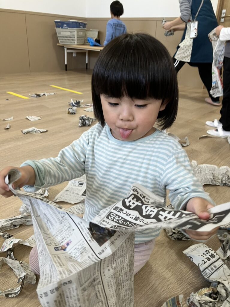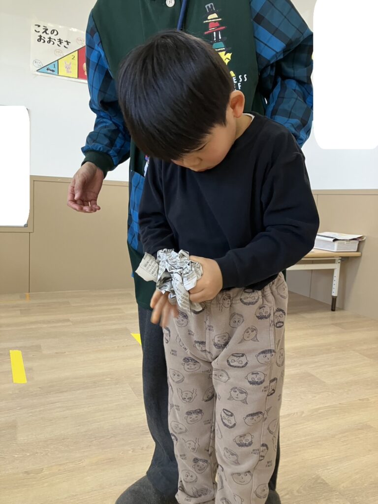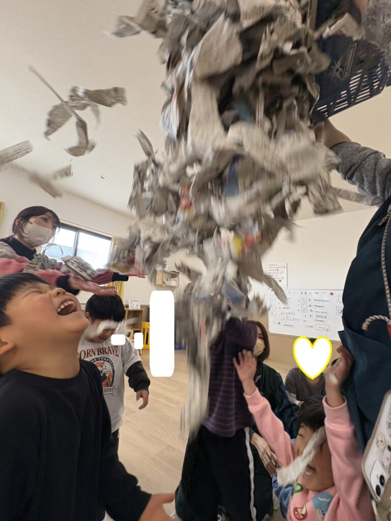 雪のように降ったきた新聞紙に大喜びの利用児さん達でした(^^♪