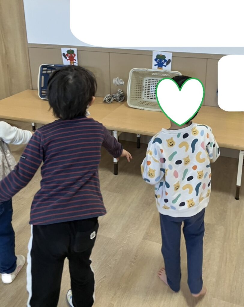 丸めた豆を「鬼は~外!福は~内!」と元気よく言いながらカゴに向かって投げましたよ😆