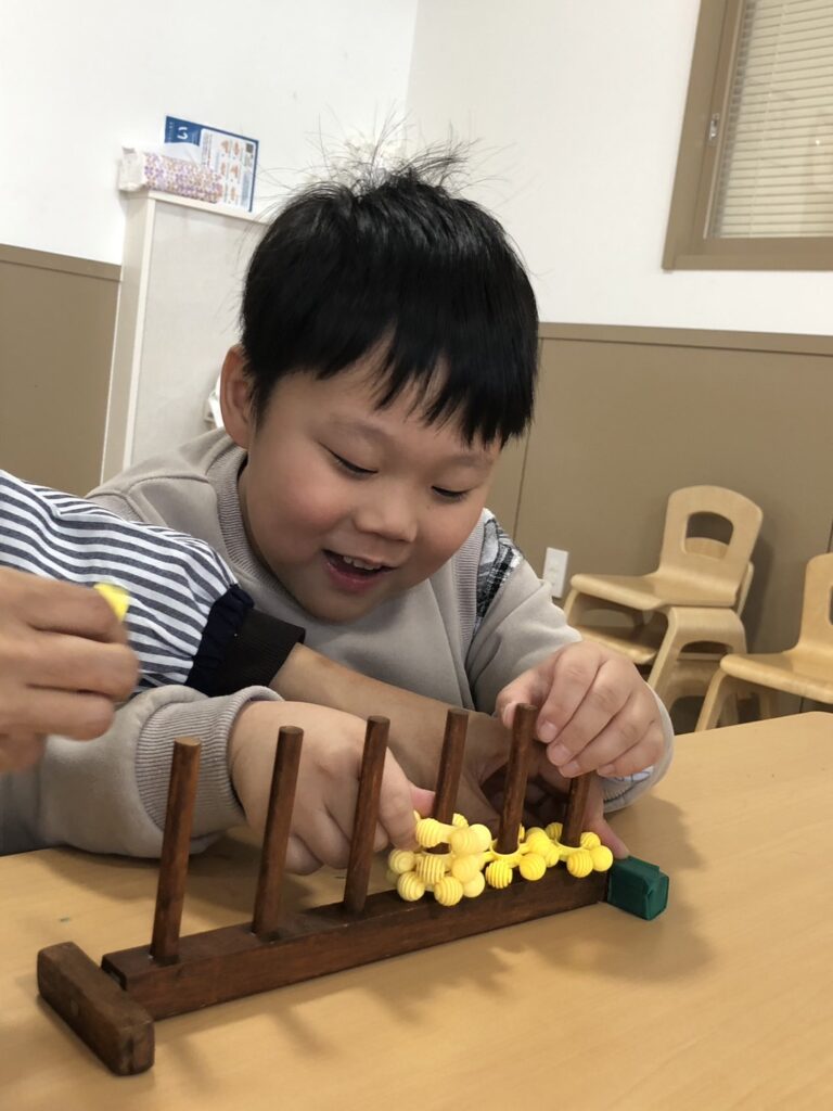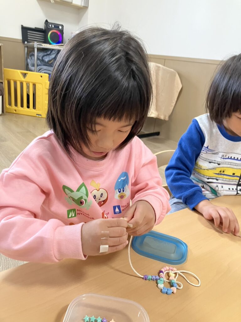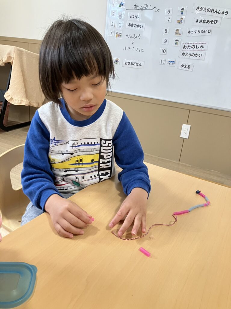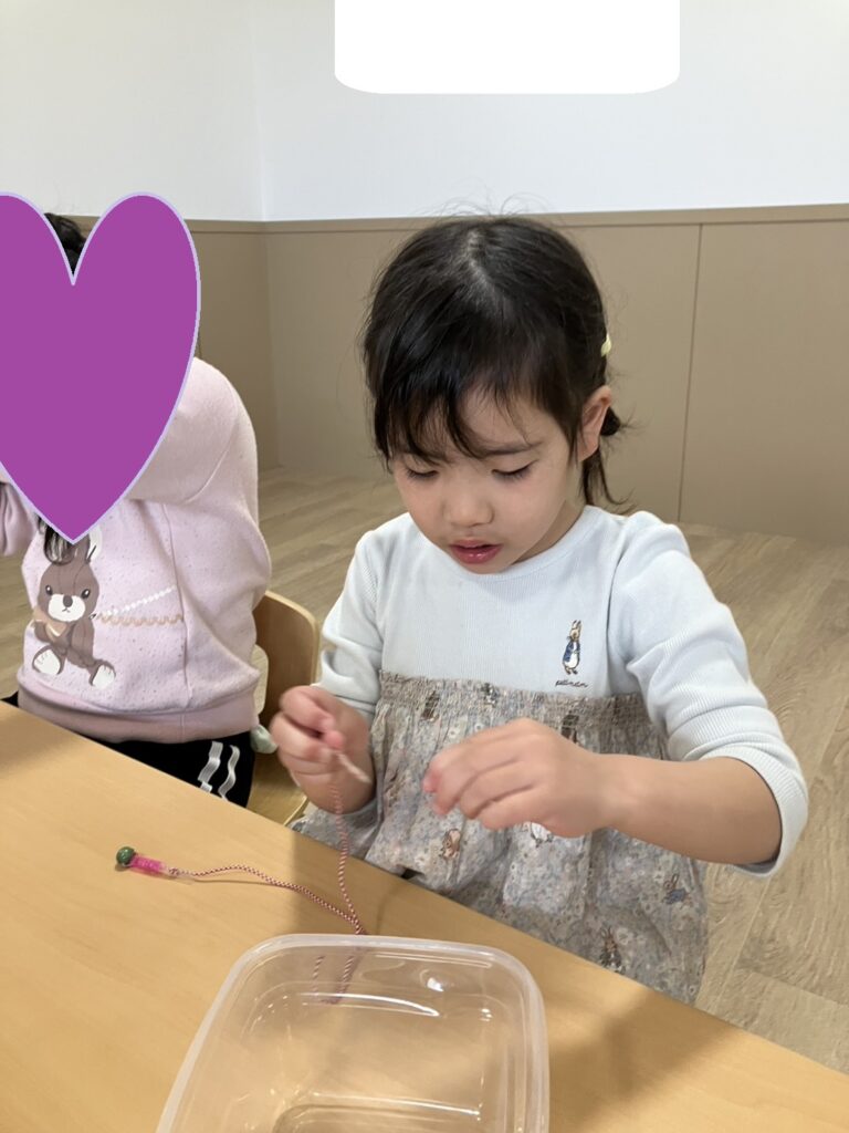 ビーズひも通しでは手先を使い、よく見て集中して行うことができました👀