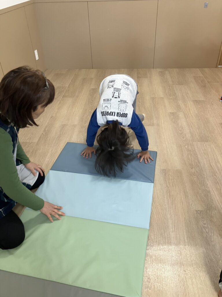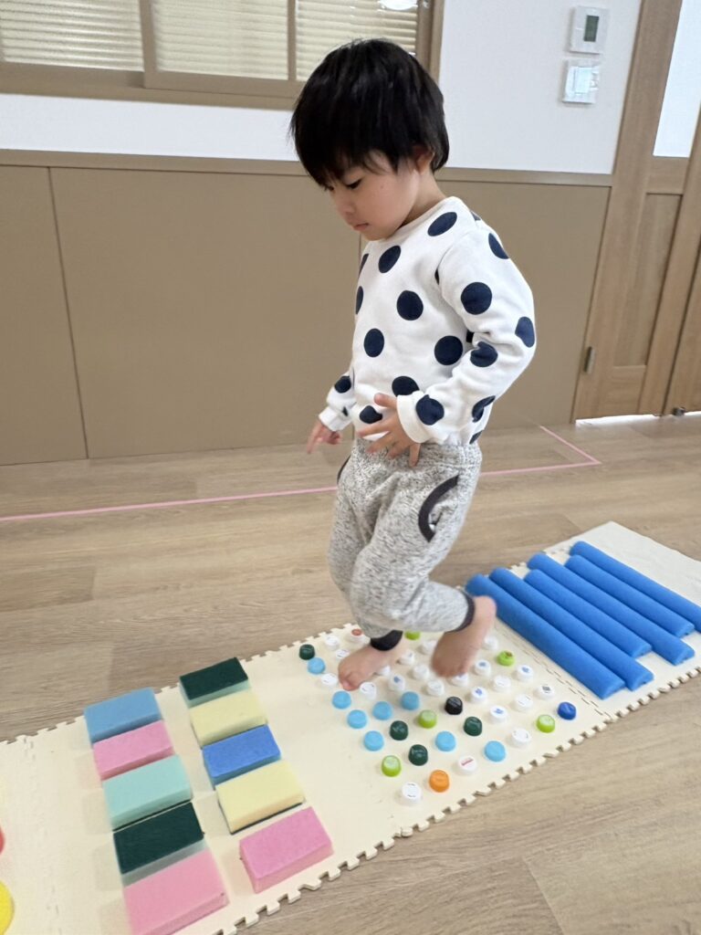 その他、感覚マットではペットボトルキャップやスポンジの感触を足裏で感じ取りながら歩いていましたよ😊