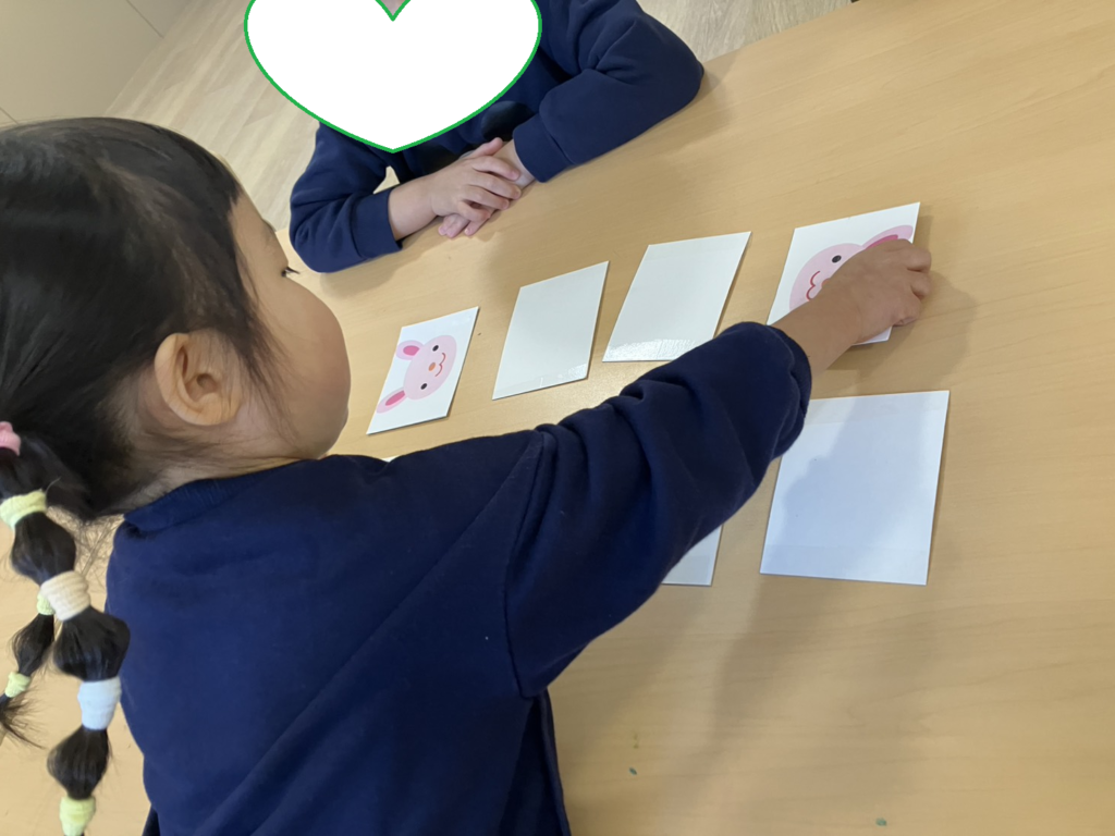 ゲームが始まると、自信満々にめくっていた子、ドキドキしてし緊張していた子・・・様々な反応を示しながらもお友達とゲームを楽しむことができました🎵