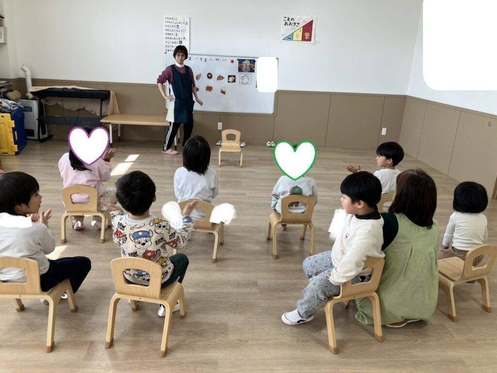 お店に並んだ品物~🎵と歌いながら「メロンパン」「あるある👏」と言葉のゲームを楽しみました☺