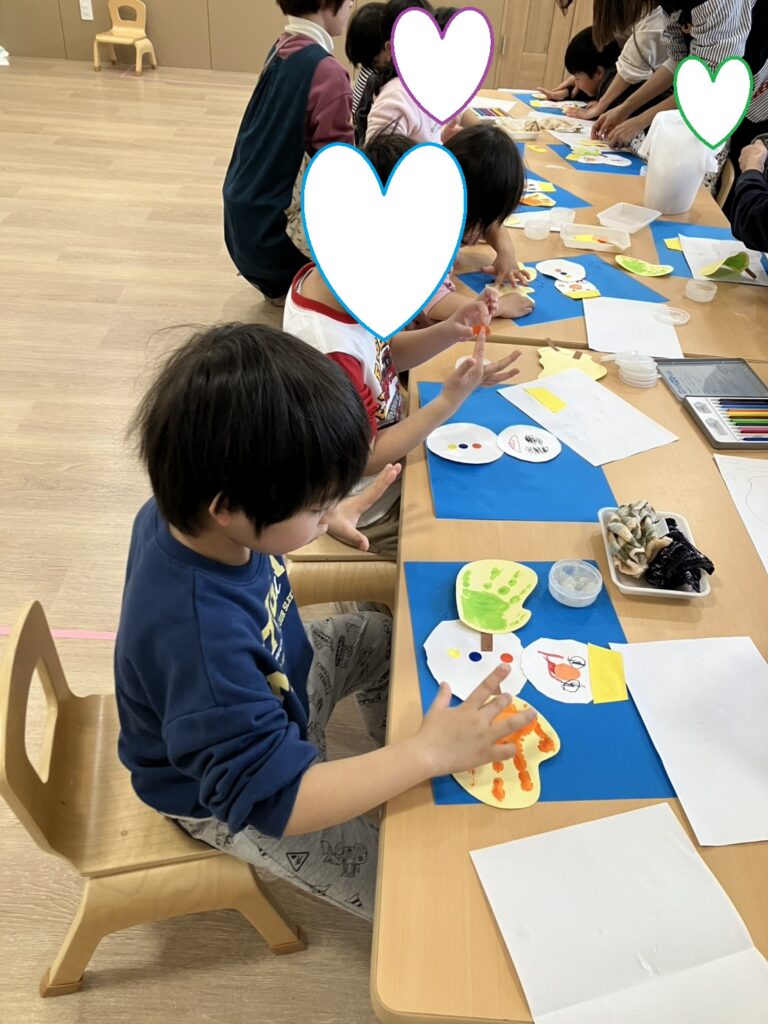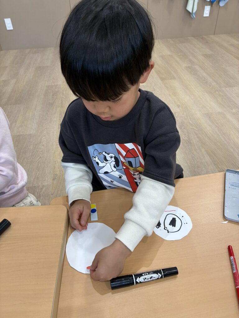お友達が描いている絵を見て「上手だね☺️」と言っていた子もいましたよ🎵