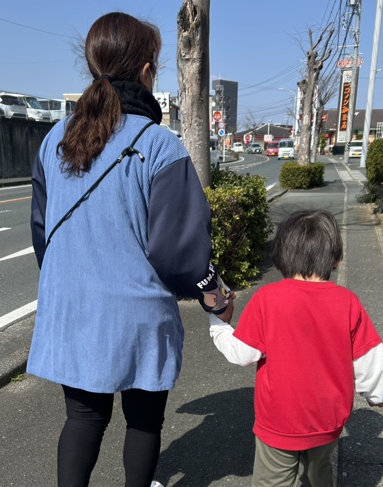 手を繋いでお買い物へ👍横断歩道の渡り方など交通ルールの確認も行いましたよ🚙
