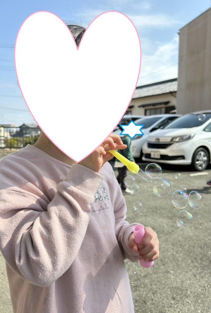 そのあとは戸外でシャボン玉、三輪車、コンビカーなどを楽しみました🚲