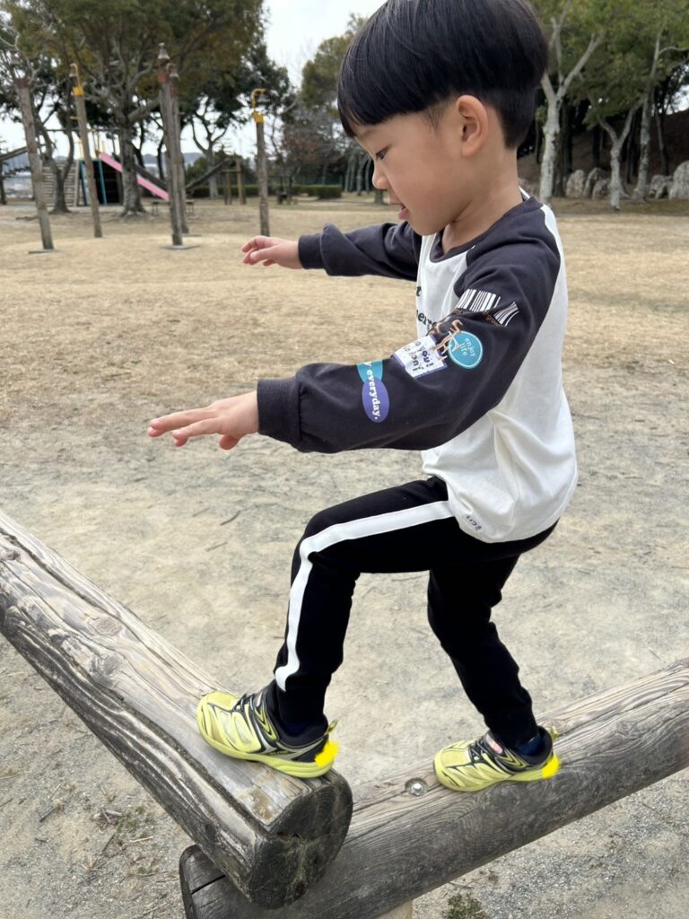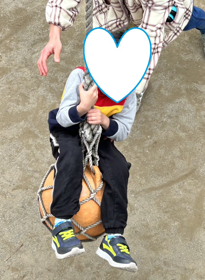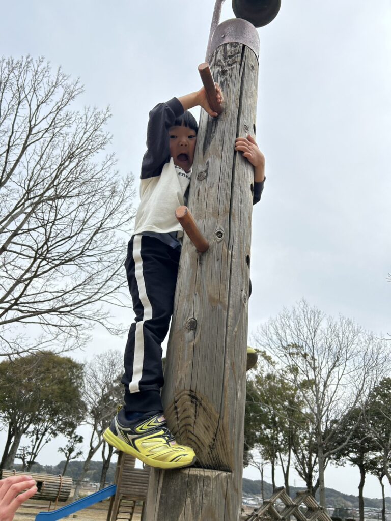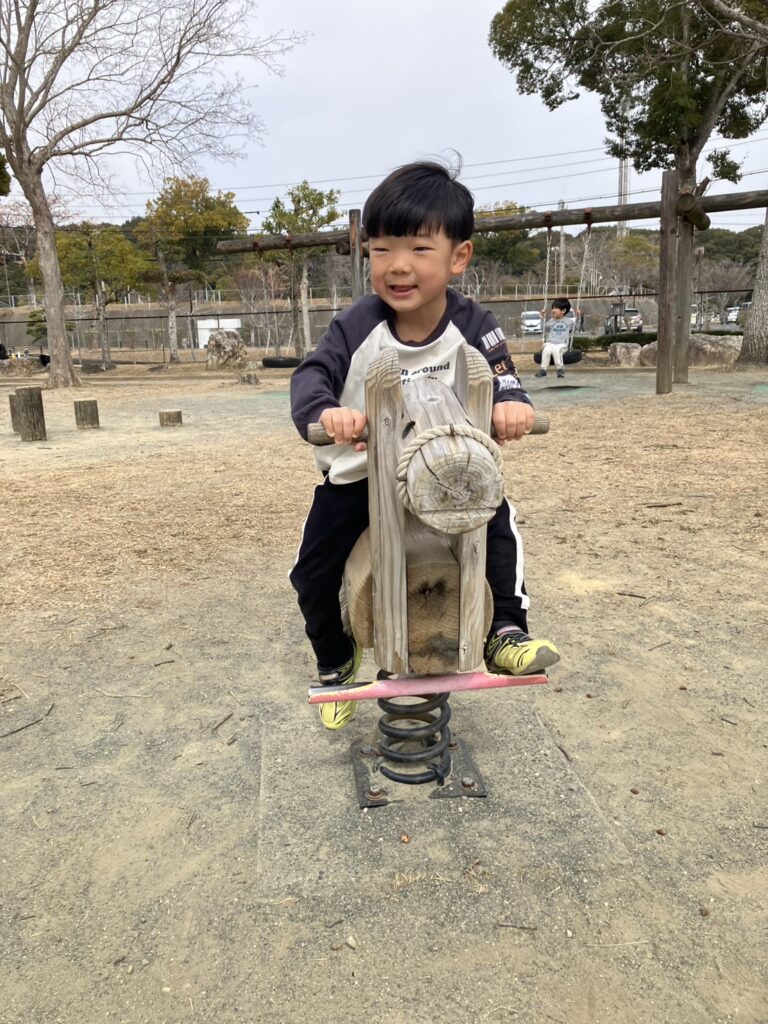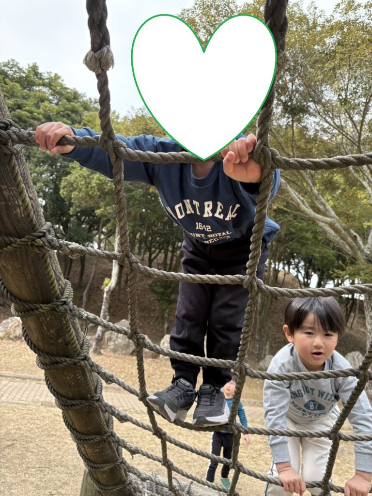 自由遊びの時間では大型遊具の揺れる丸太を上っていたお友達を見て「ぼくもやってみよう!」と後を追っていた子もいましたよ。